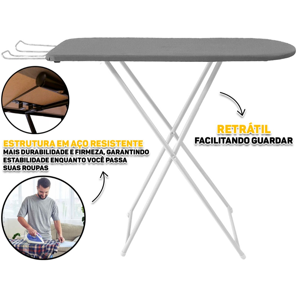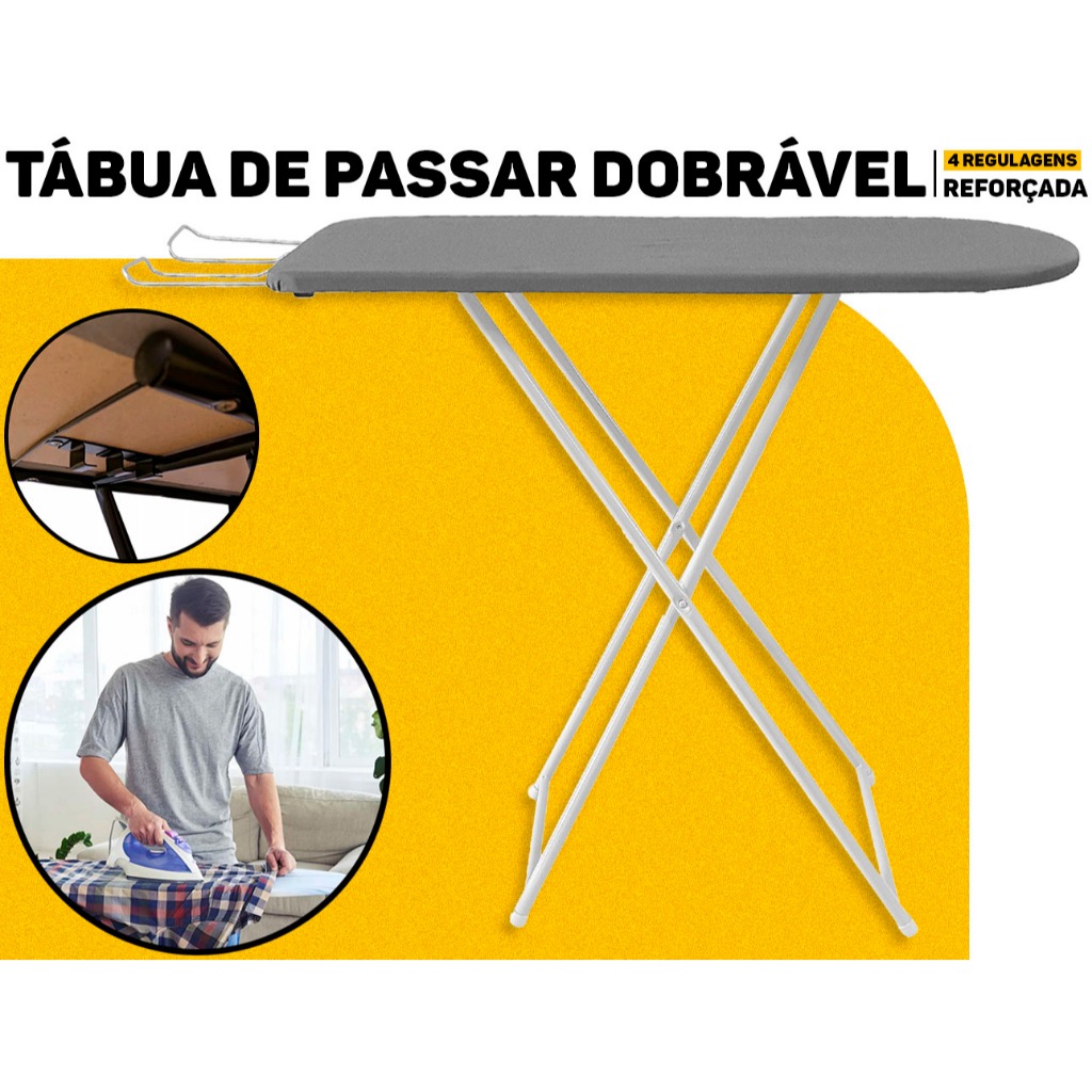Tabua De Passar Roupa Resistente Reforçada 4 Regulagens Altura Belo Rio Azul / Branco