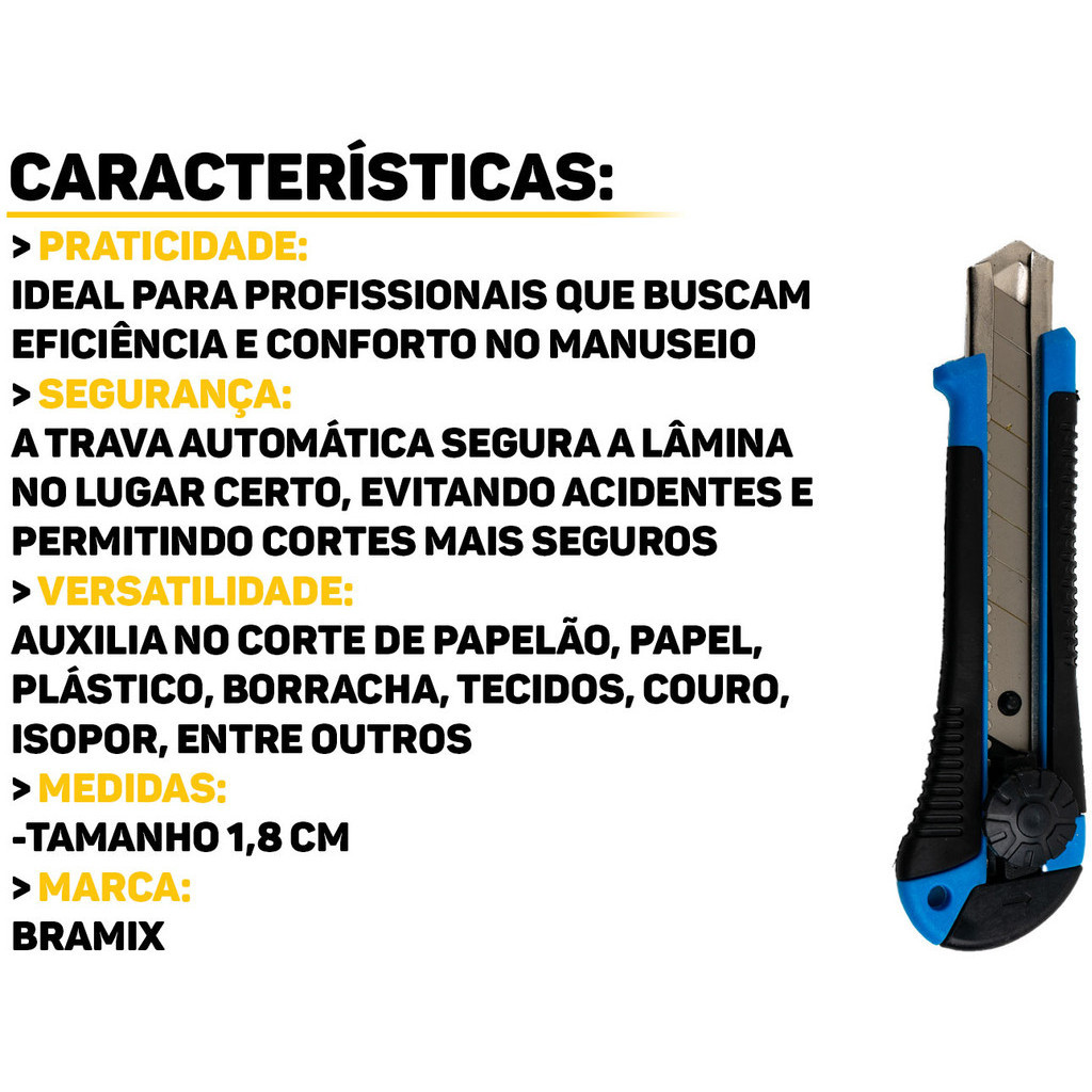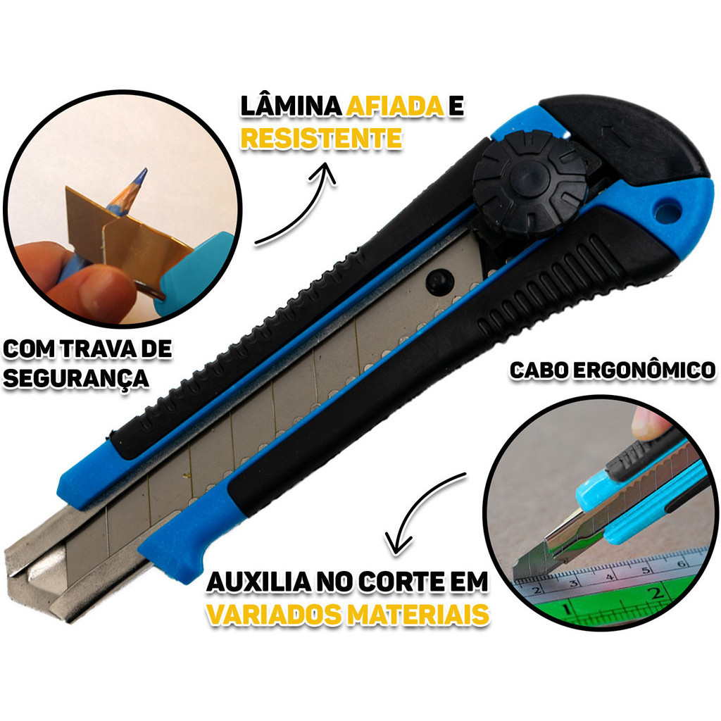 Estilete Multiuso Profissional Cabo Emborrachado Com 1 Lâmina Aço 18mm Com Trava De Segurança