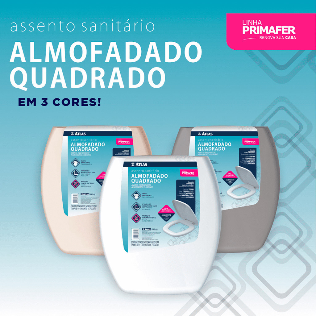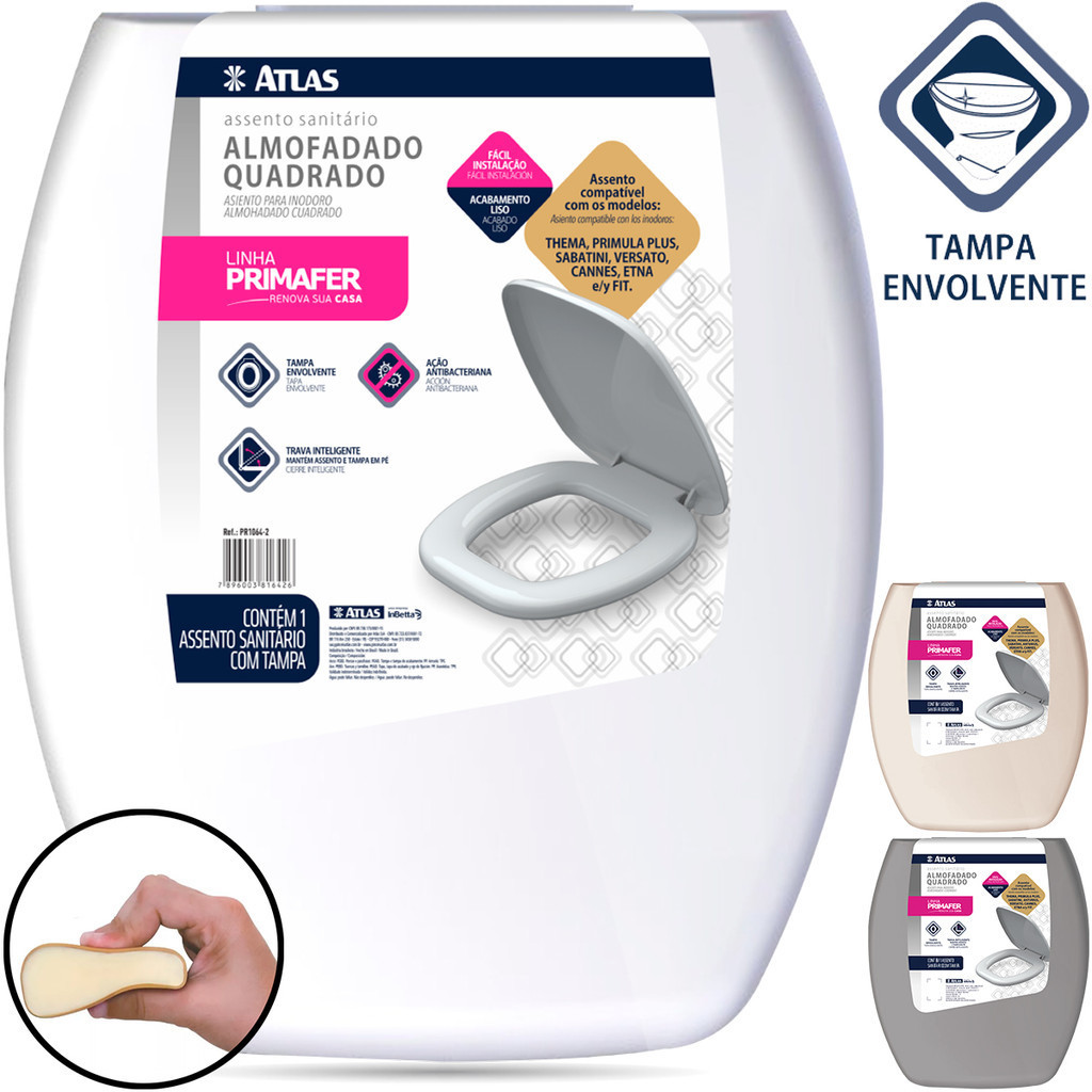 Assento Sanitário Clássico Almofadado Retangular Thema Atlas Primula Sabatini Anturius Versato Cannes Etna Fit