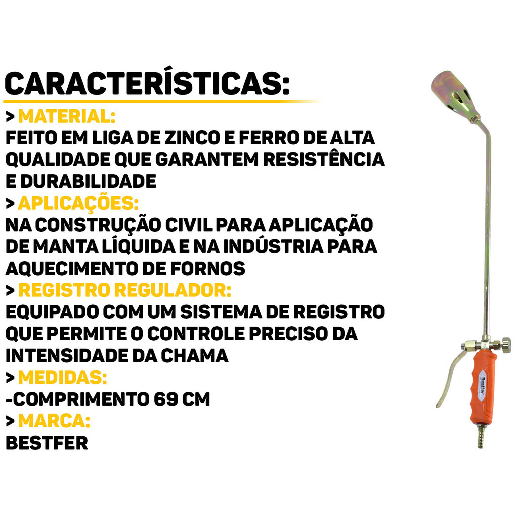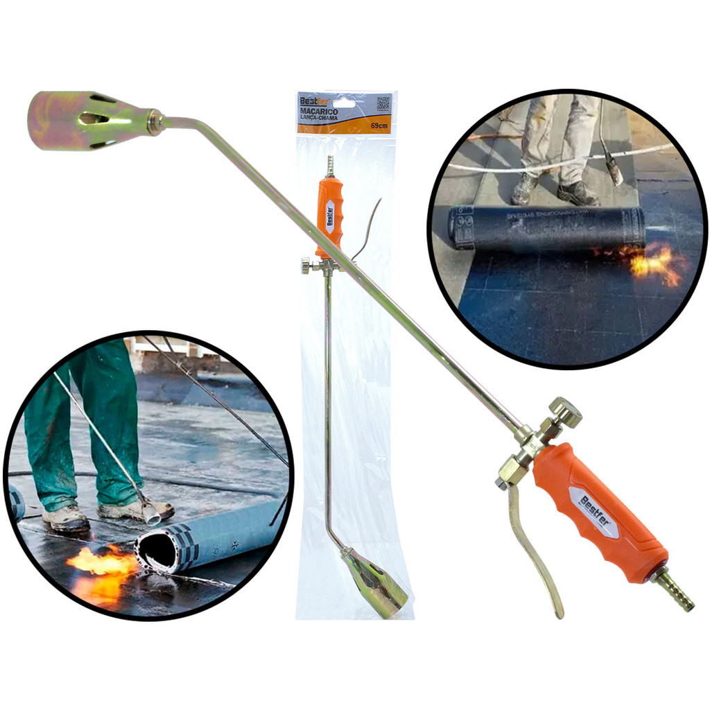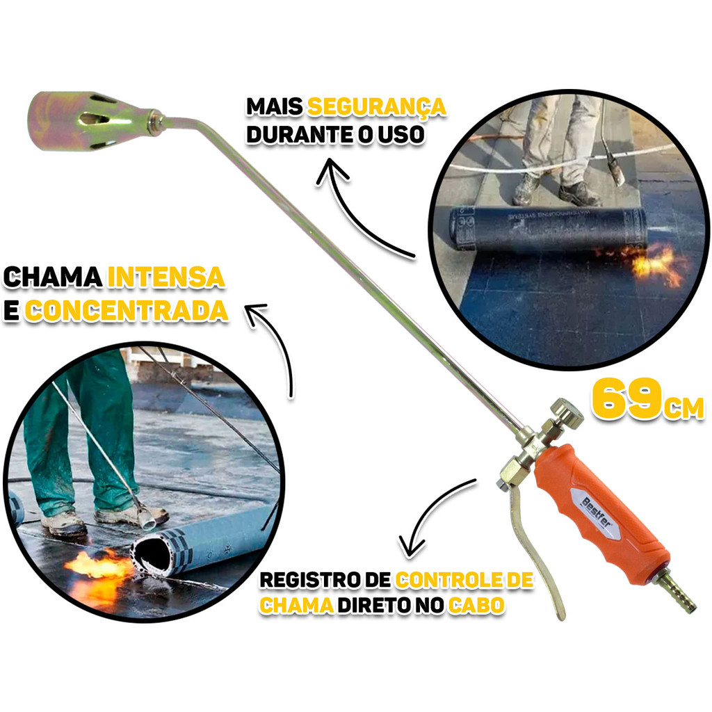 Maçarico À Gás Lança Chamas 69cm Com Registro Regulador Para Construção Civil Zinco E Ferro