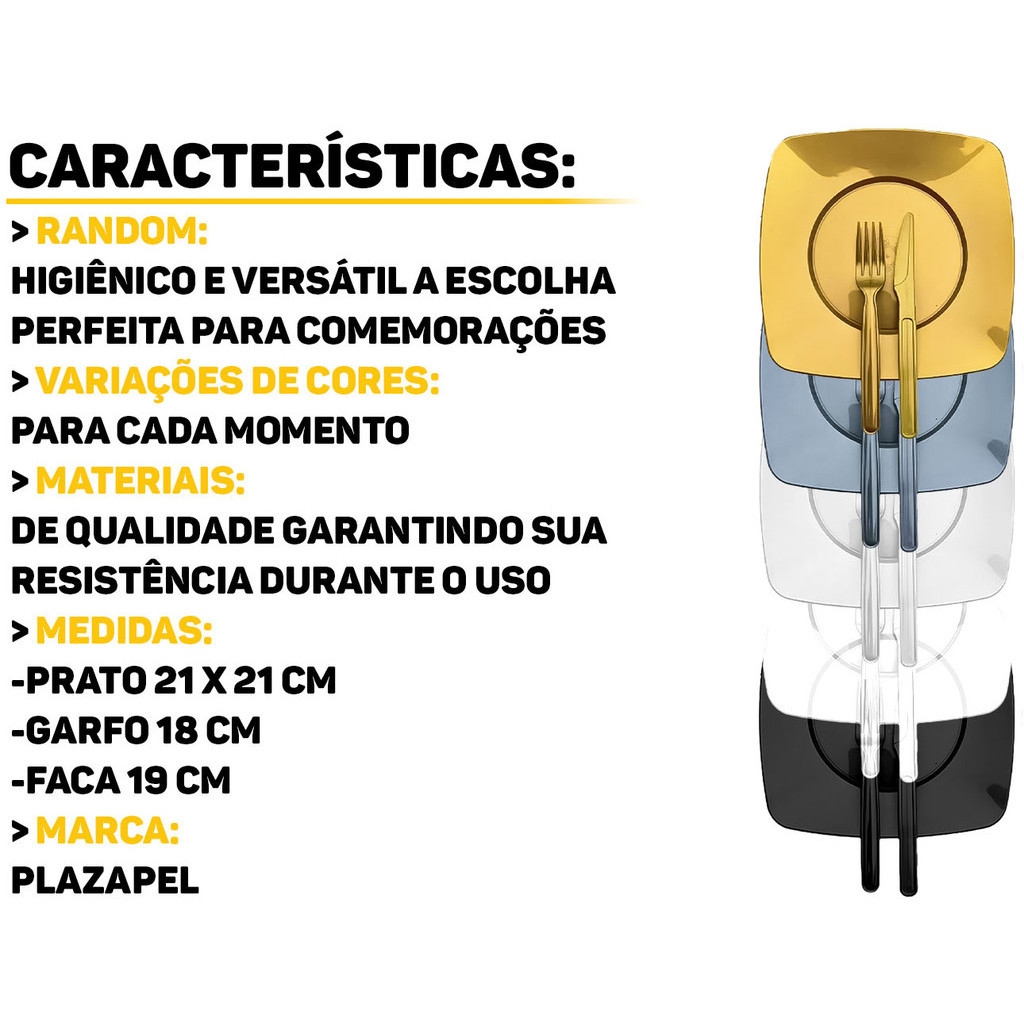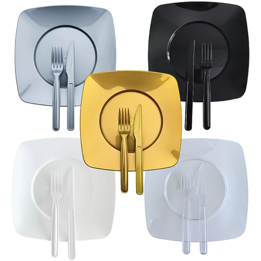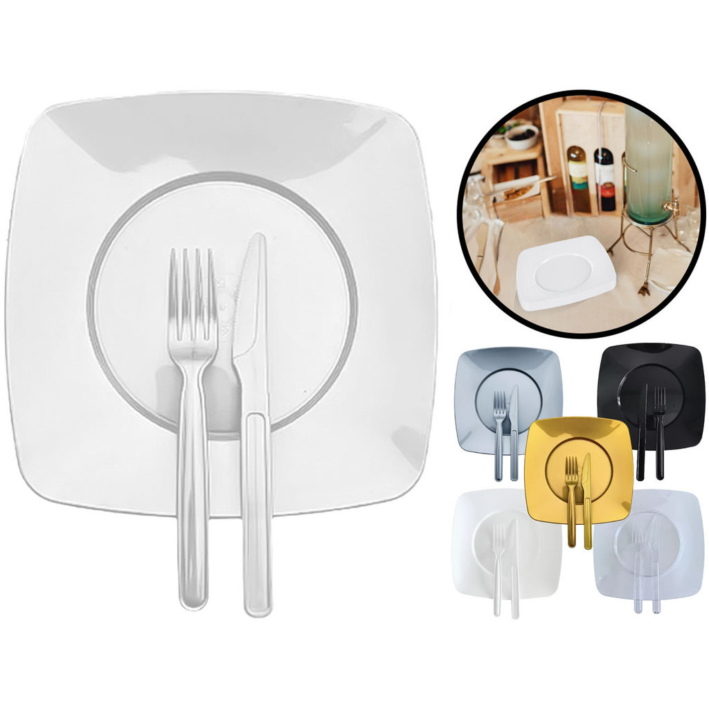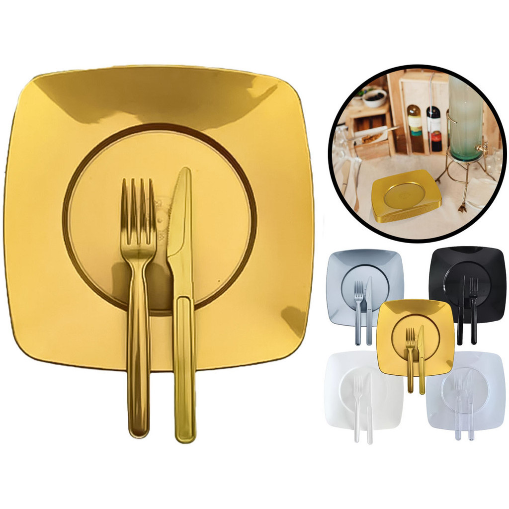 Kit Festa Churrasco Refeição C/ 50 Pratos + 50 Talheres Acrílico Reforçado Qualidade Descartáveis