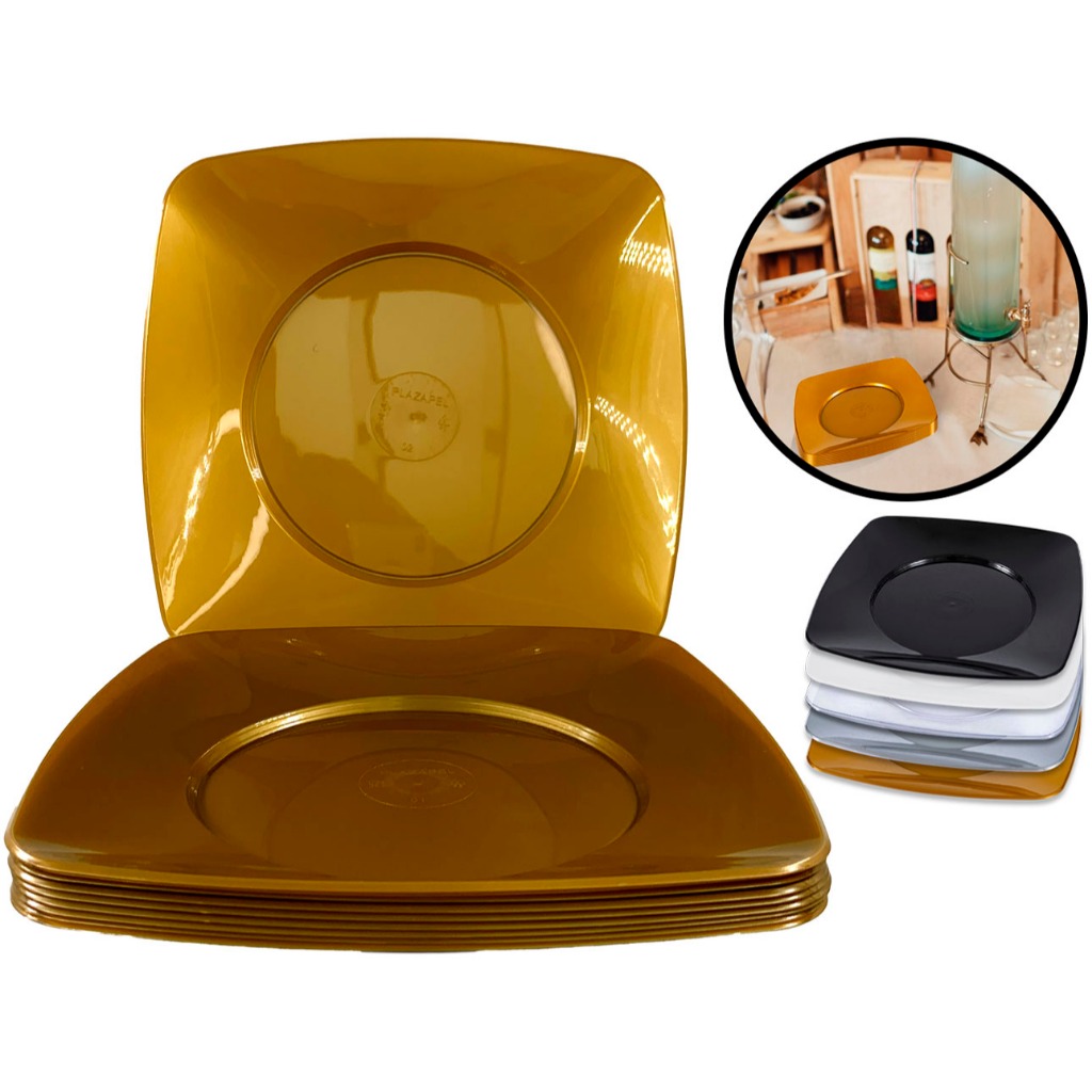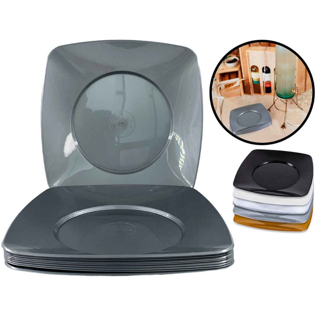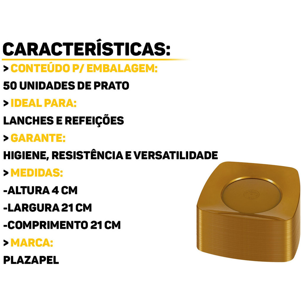 Kit 50 Pratos Grande 21cm Quadrado Prato Refeição Churrasco Comida Acrílico Lavável Descartável