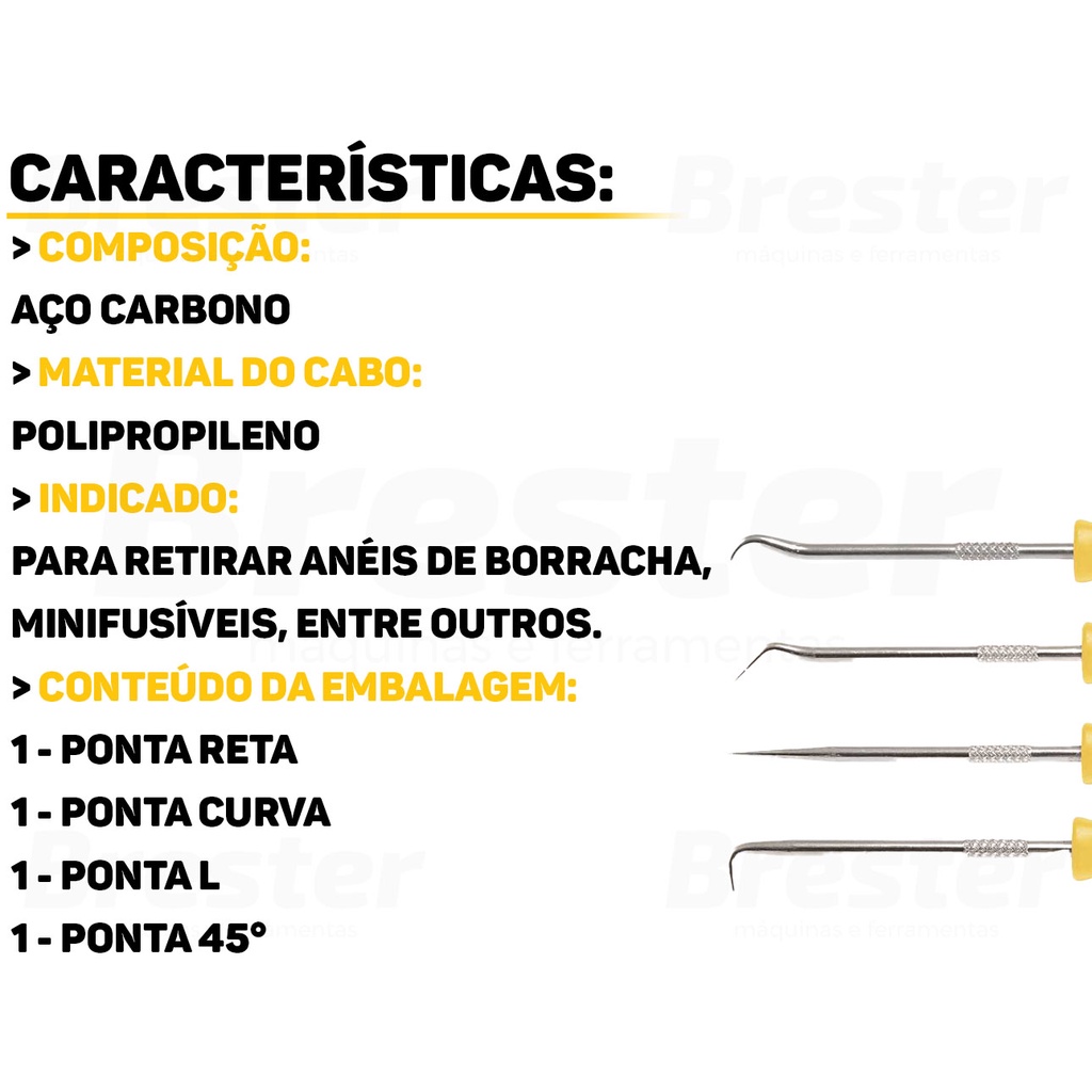 Jogo Mini Pegadores 4 Peças Haste Aço Carbono Retirar Anéis De Borracha Minifusíveis Profissional Vonder