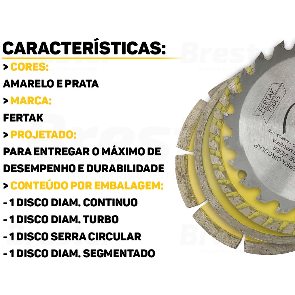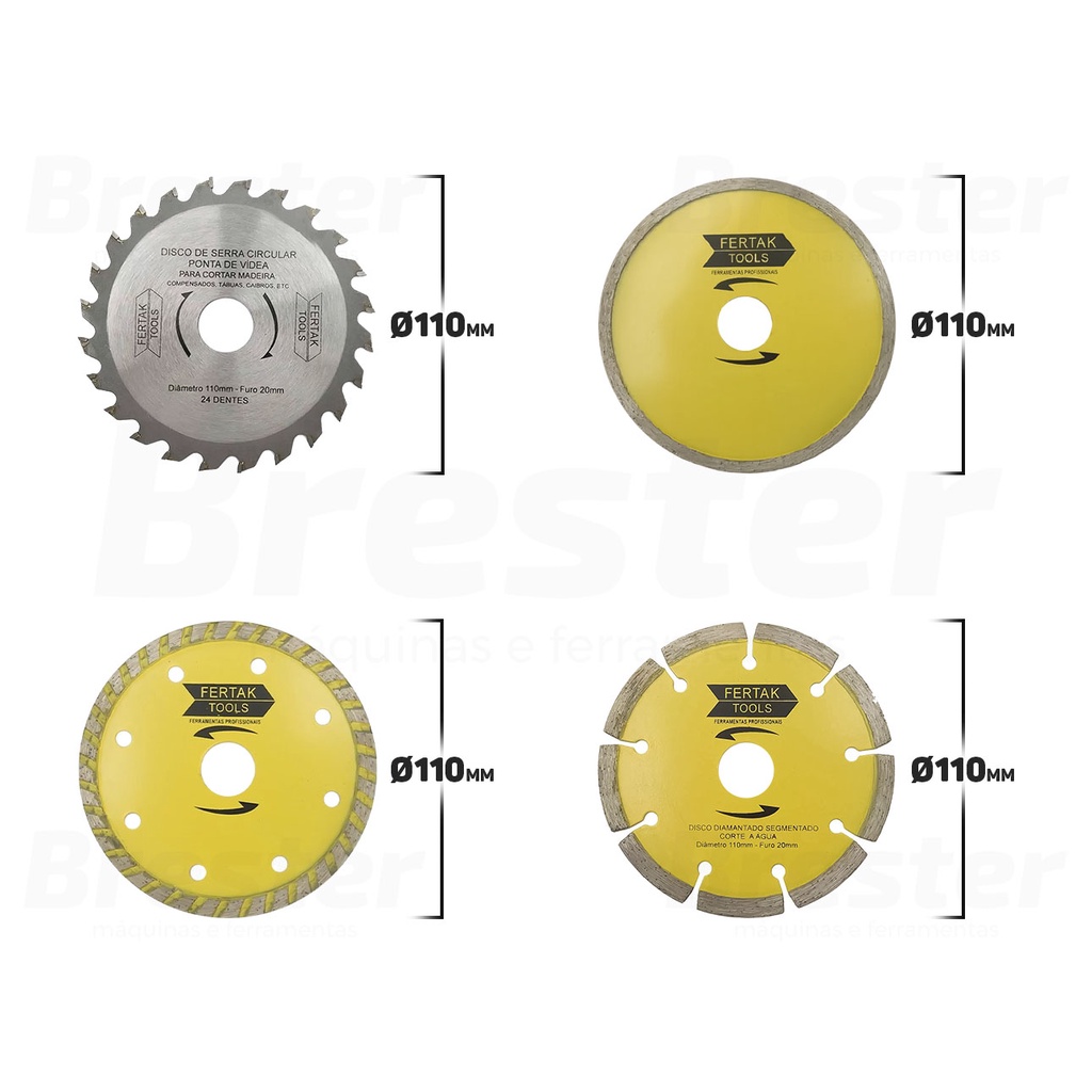 Jogo de Disco Diamantado e De Serra Fertak 4un P/ Makita E Serra Mármore Vários Usos Kit de Discos, Disco de Corte