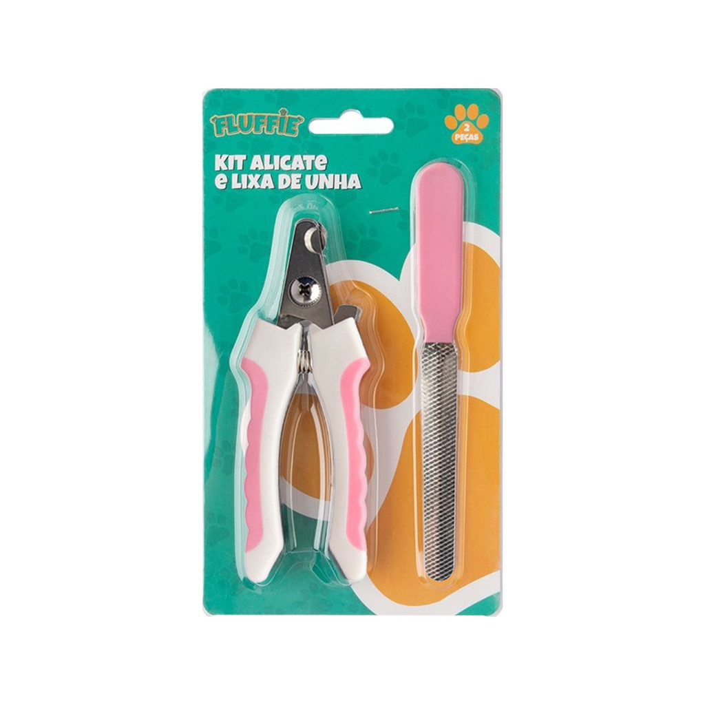 Kit Alicate Cortador De Unhas Para Pet Cão Gato Aço Inox + Lixa Profissional Cabo Plástico