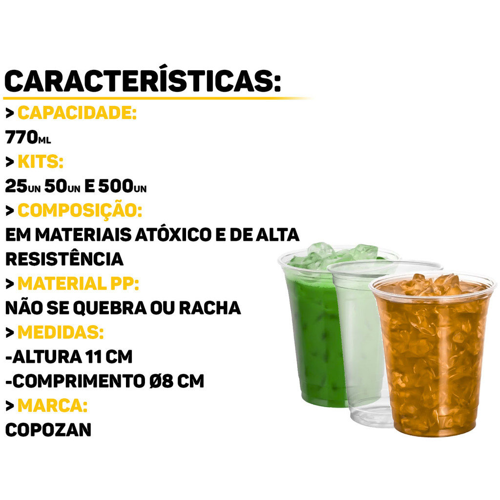25und Copo Descartável Grande 770ml Liso Festa Para Chopp Suco Refrigerante Bebidas Sobremesa Açaí Resistente