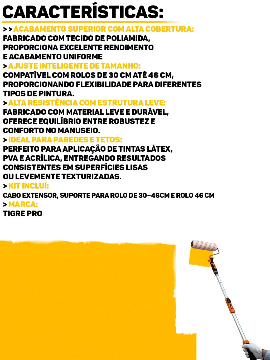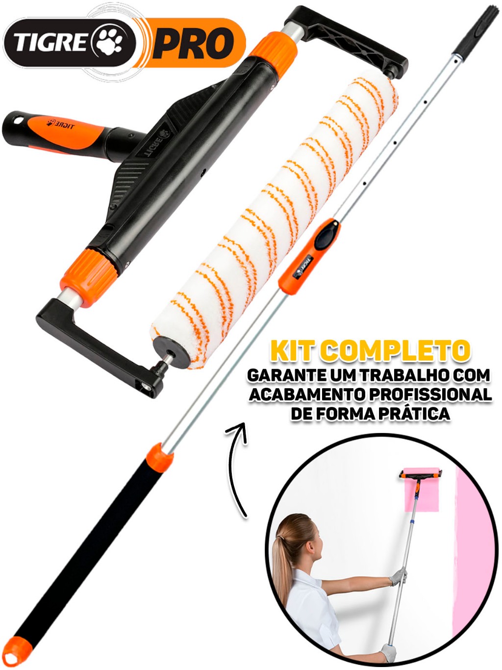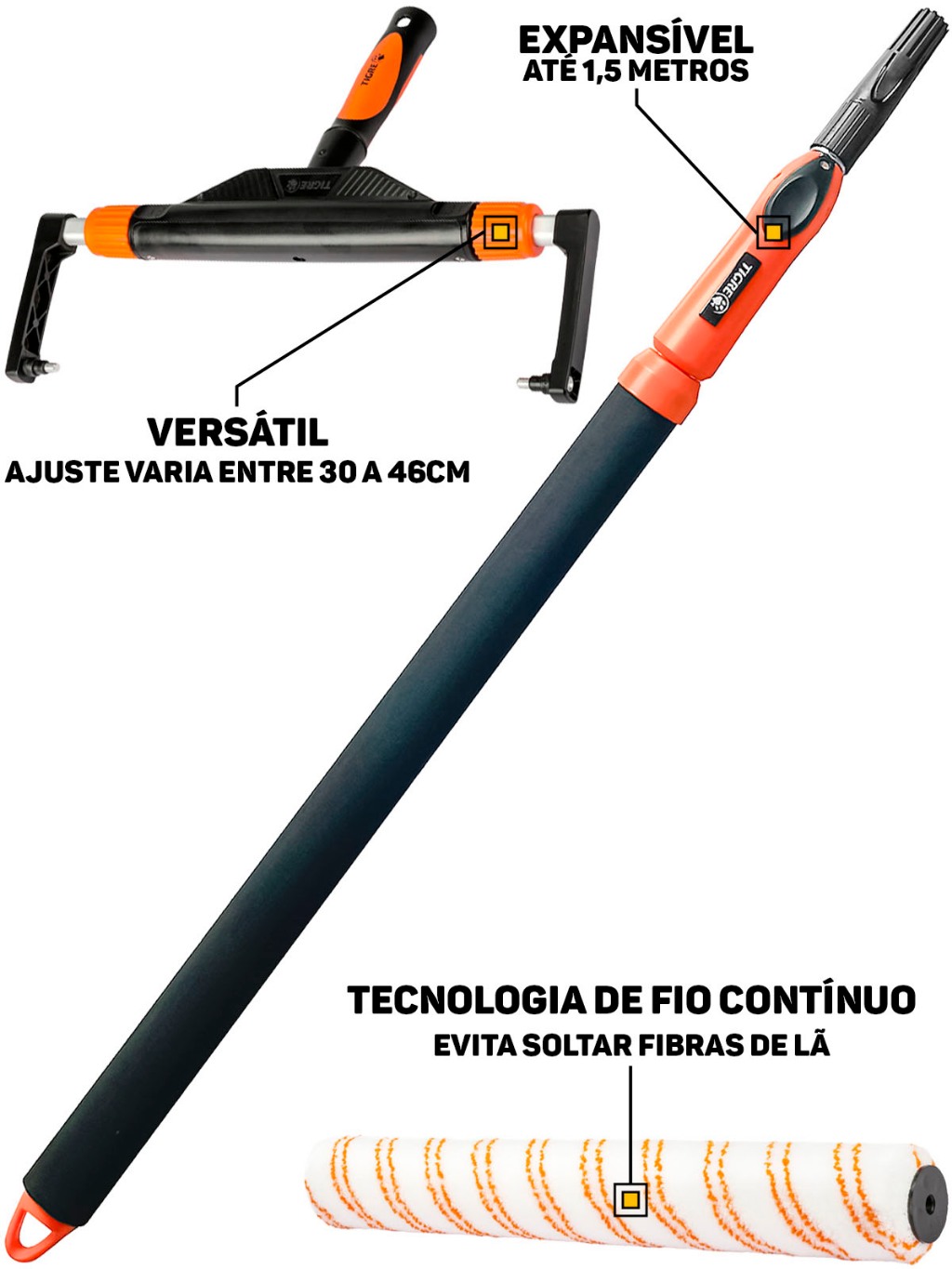 Kit Extensor 1,5 Metros + Rolinho 46cm Para Pintura Multiuso + Garfo Duplo Ajustável Tigre Pro