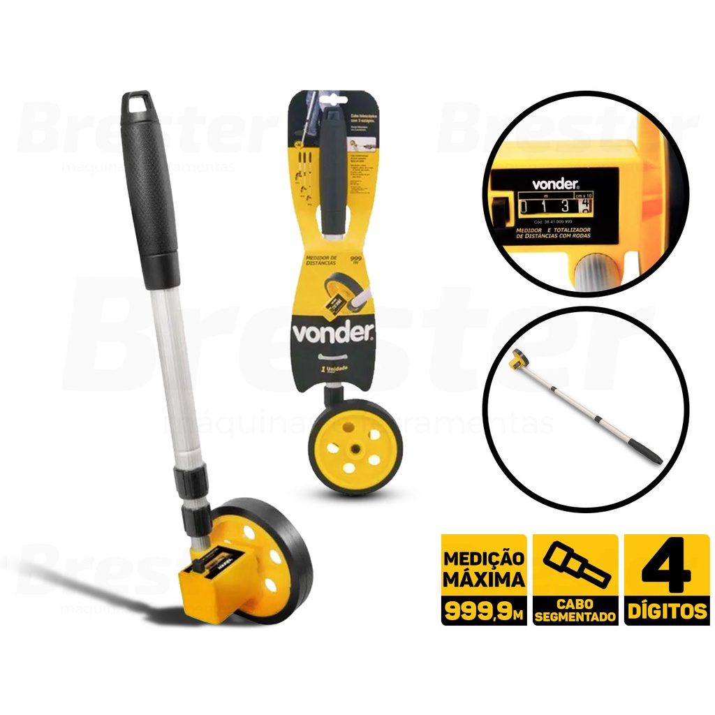 Medidor De Distância C/ Roda 4 Dígitos Trena Analógica Com Rodas 1.000m Vonder