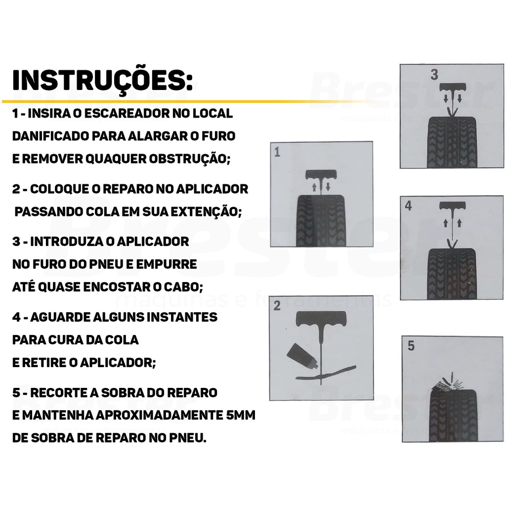 Kit Reparo Metal Remendo Macarrão Pneu Sem Câmara Carro Moto Bestfer BFH2134