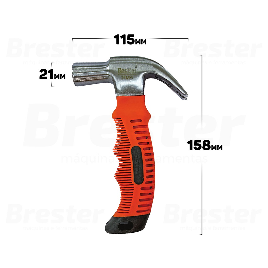 Martelo De Carpinteiro 21mm Cabo Curto Emborrachado Bestfer BFH0678