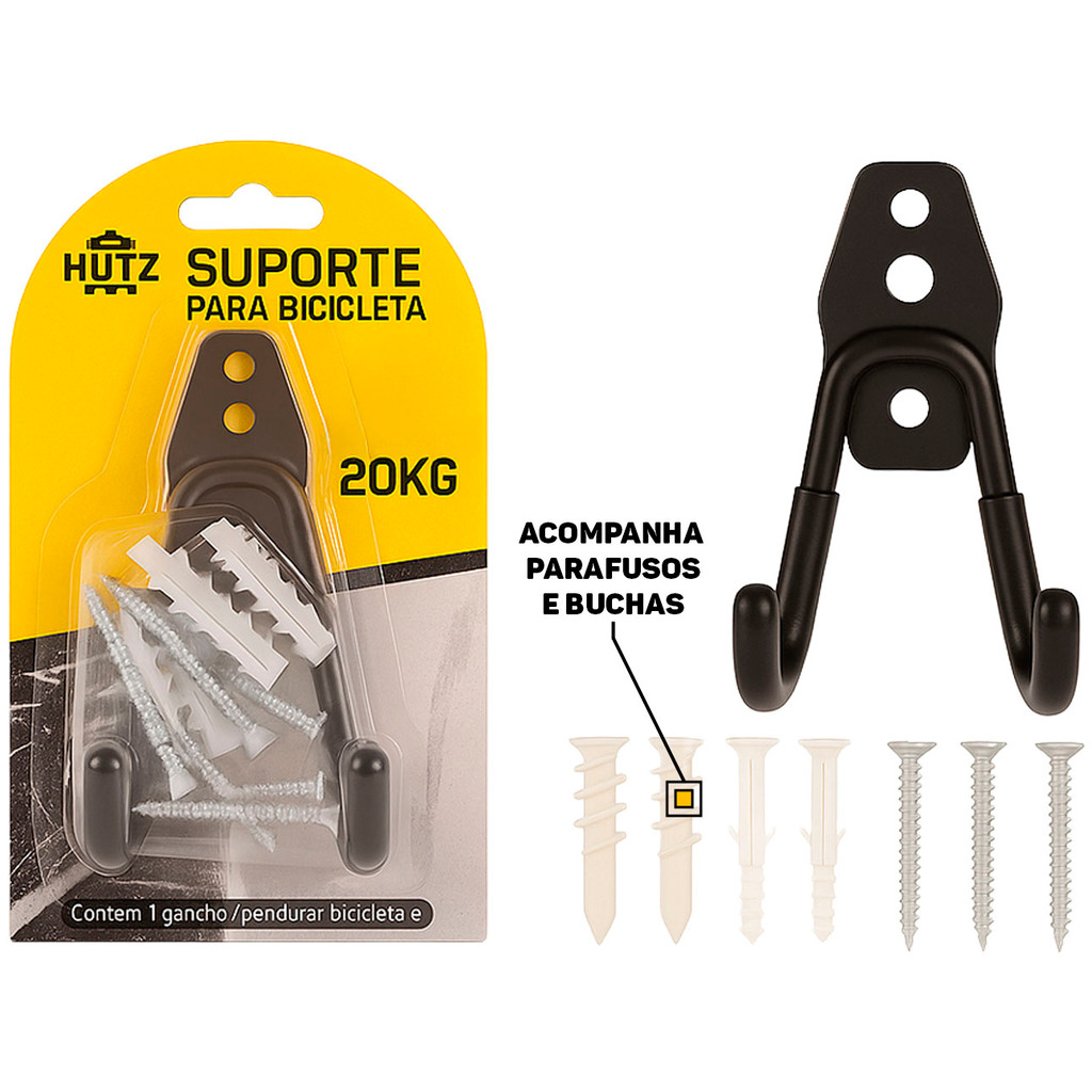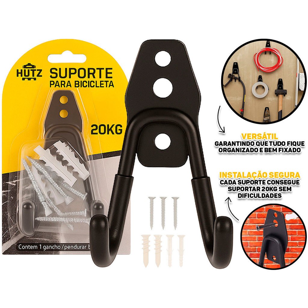 Suporte Ferro Para Parede Bicicleta Ferramentas Multiuso + Bucha Instalação 9 Peças Hutz