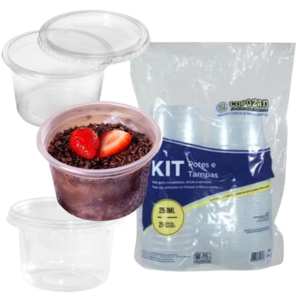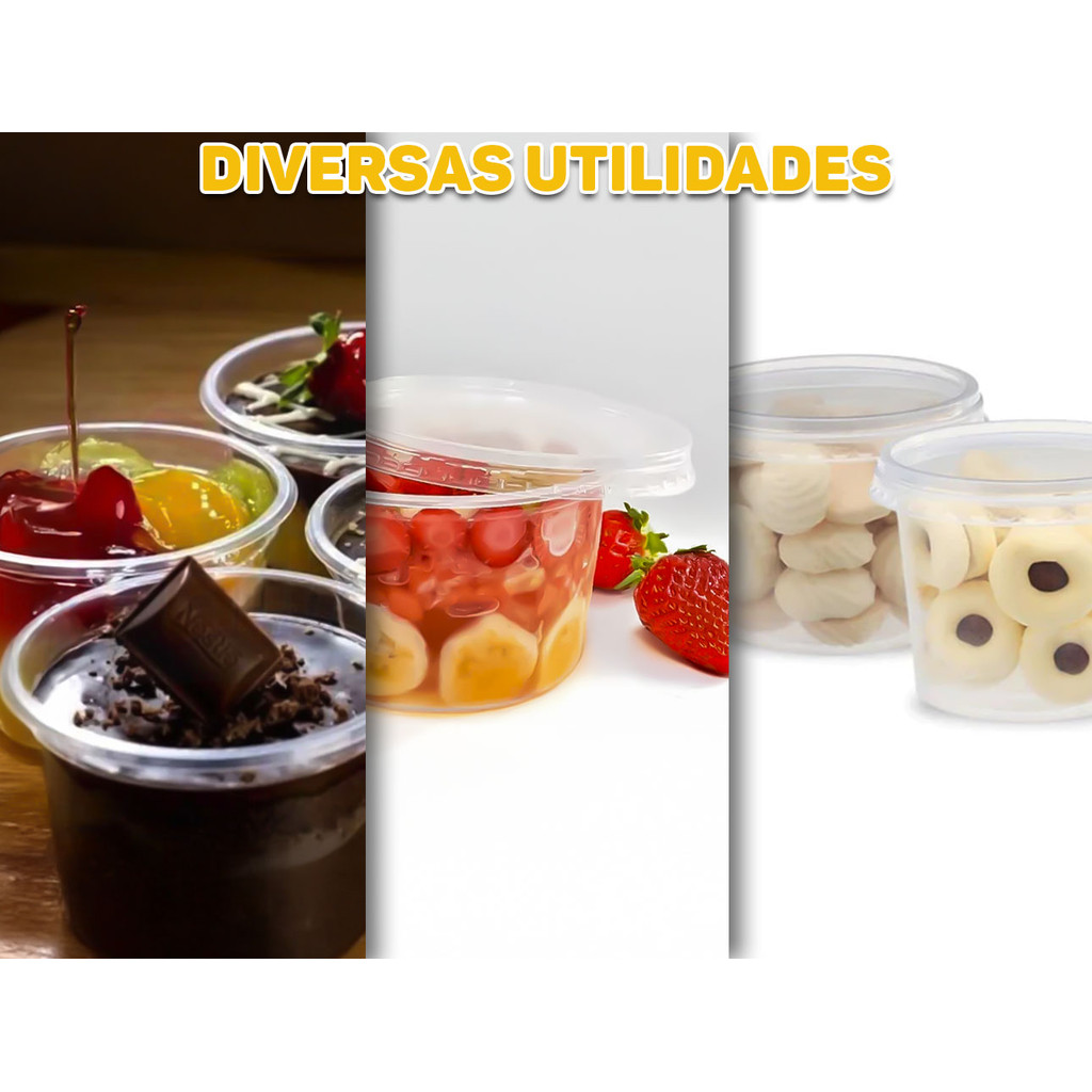 25und Pote Plástico Redondo 250ml Descartável Com Tampa Bolo No Pote Açaí Marmita Freezer Microondas Embalagem