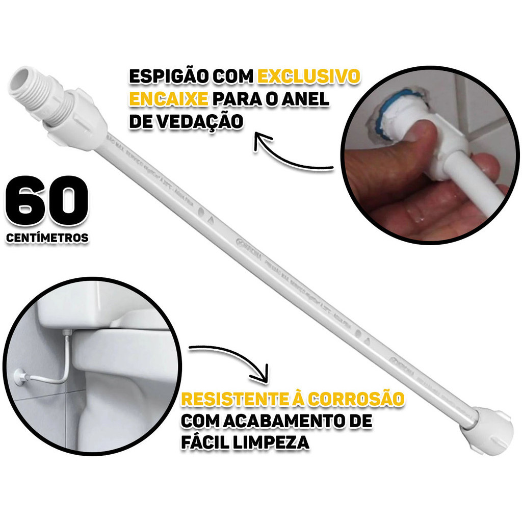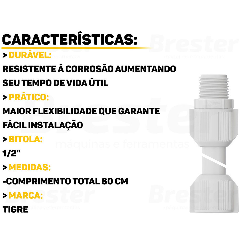 Engate Mangueira Rabicho Flexível De Pvc 1/2 x 60cm Pia Encanamento Cor Branco Tigre