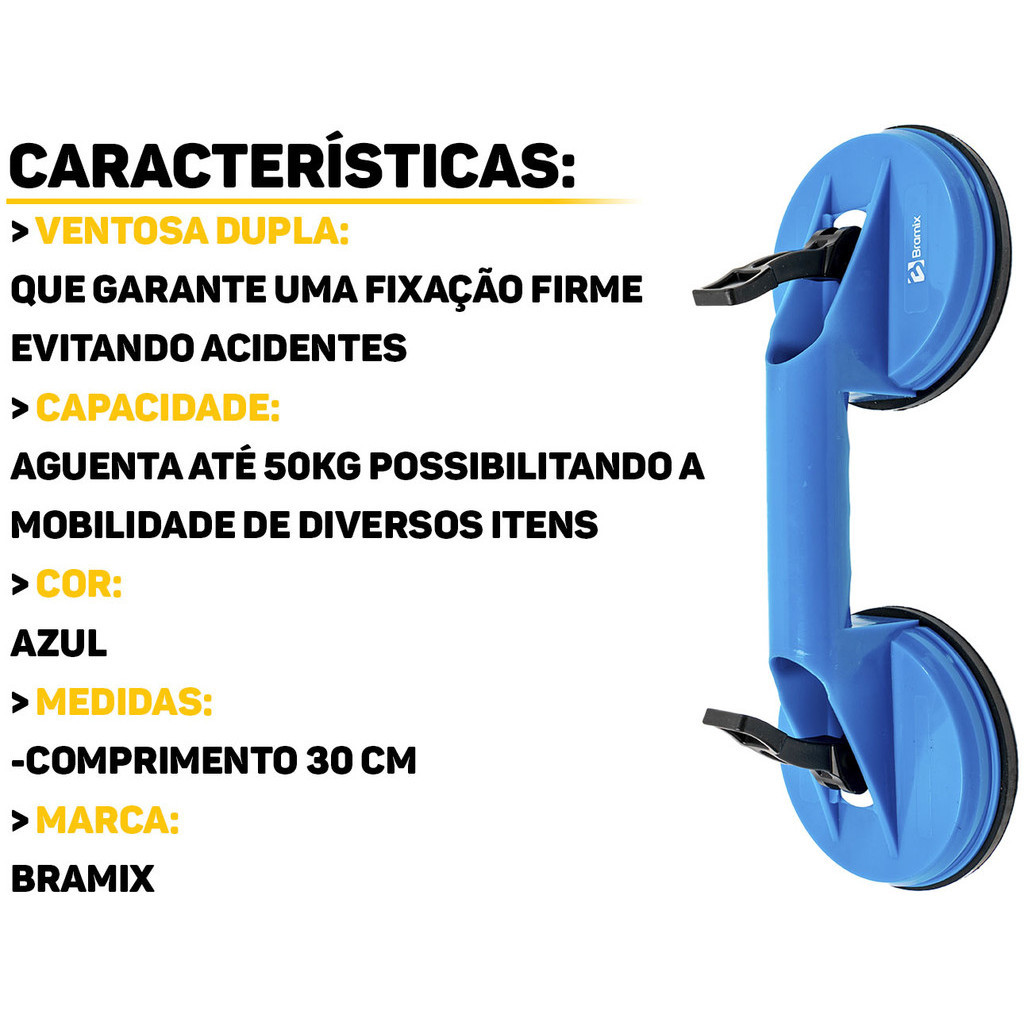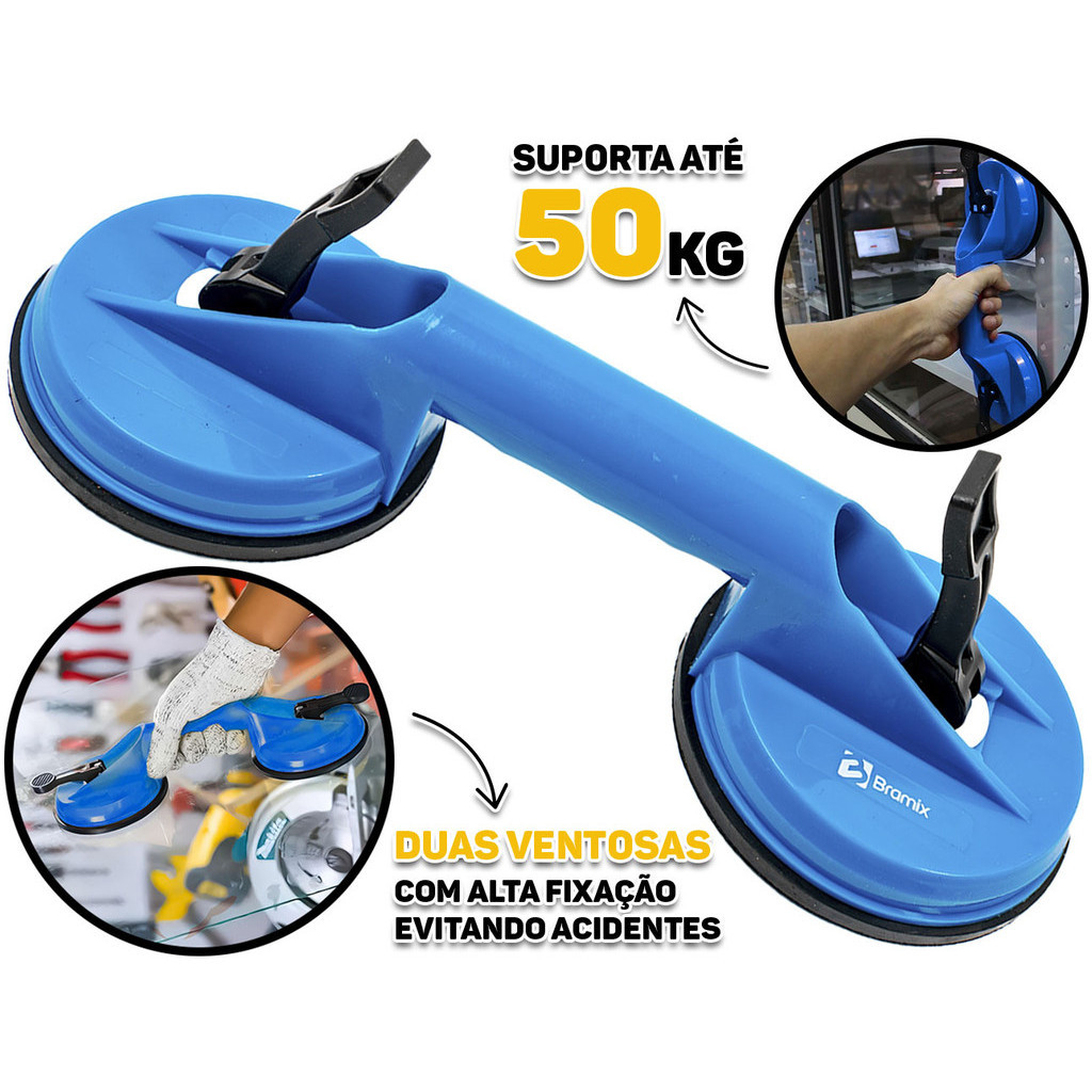 Ventosa Dupla Profissional Plástico Vidro Piso Porcelanato Mármore Chapas Cerâmica Suporta Até 50kg
