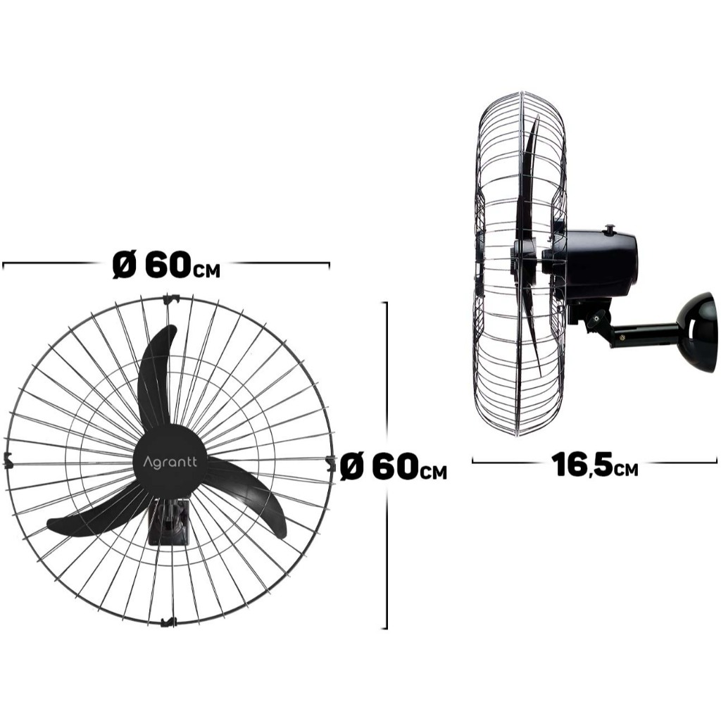 Kit 3 Ventilador De Parede 60cm 147w Premium Oscilante Loja Escola Academia Comércio Igreja Agrantt