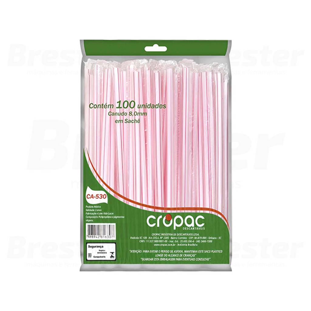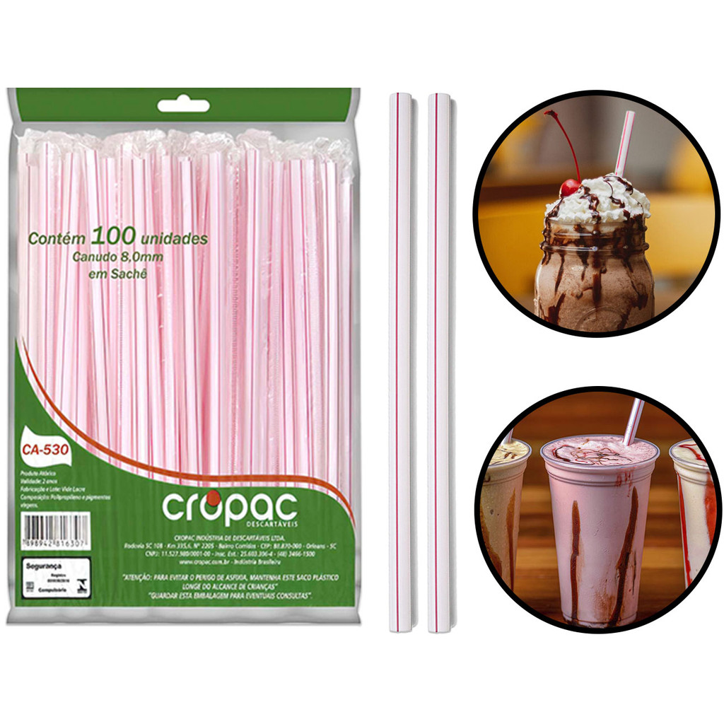 Pacote 100 Canudo Grosso Sachê 8mm Milk Shake Sorvete Sucos Açaí Cropac
