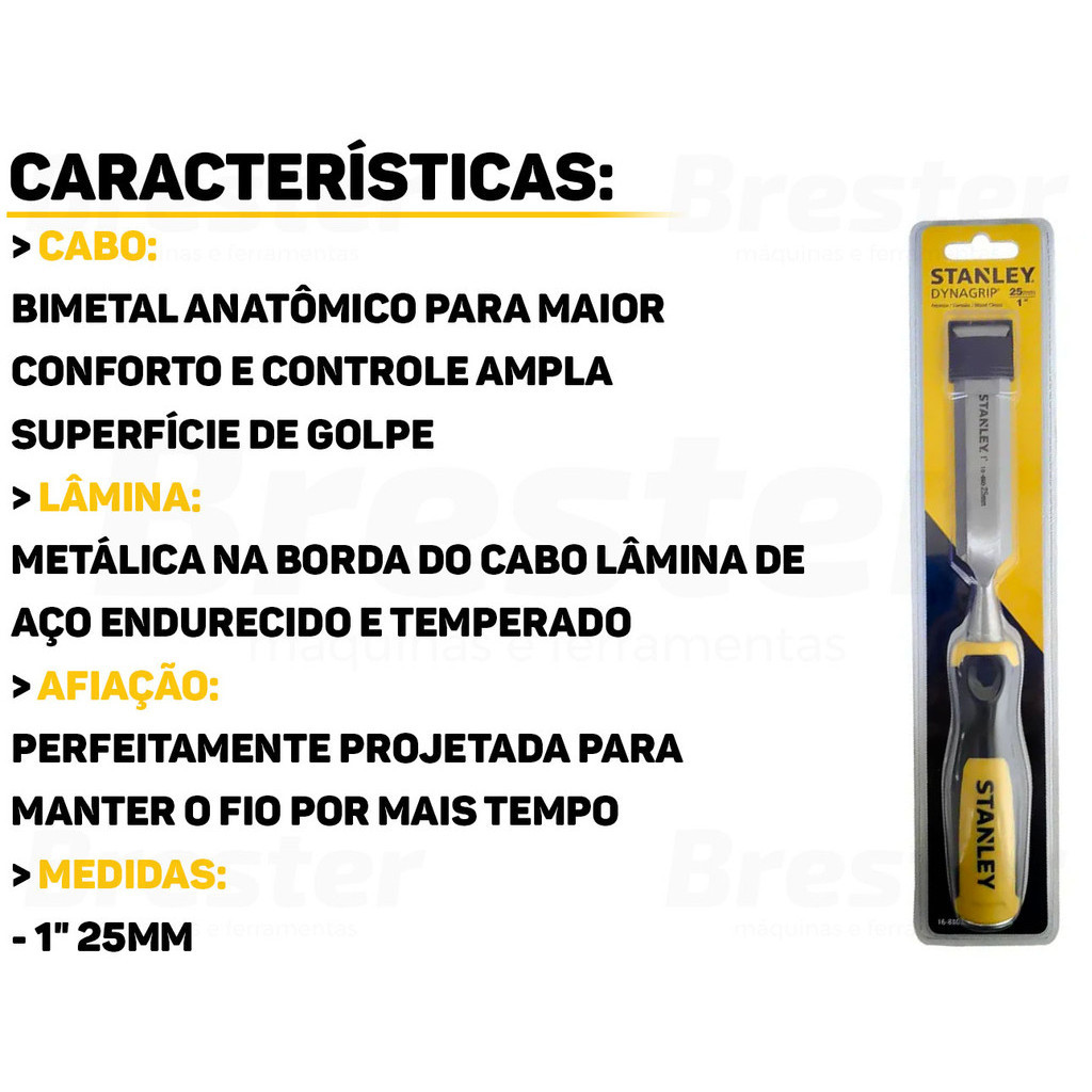 Formão Para Madeira Carpintaria Artesanato Marcenaria Escultura Cabo Emborrachado 1 Polegada Stanley