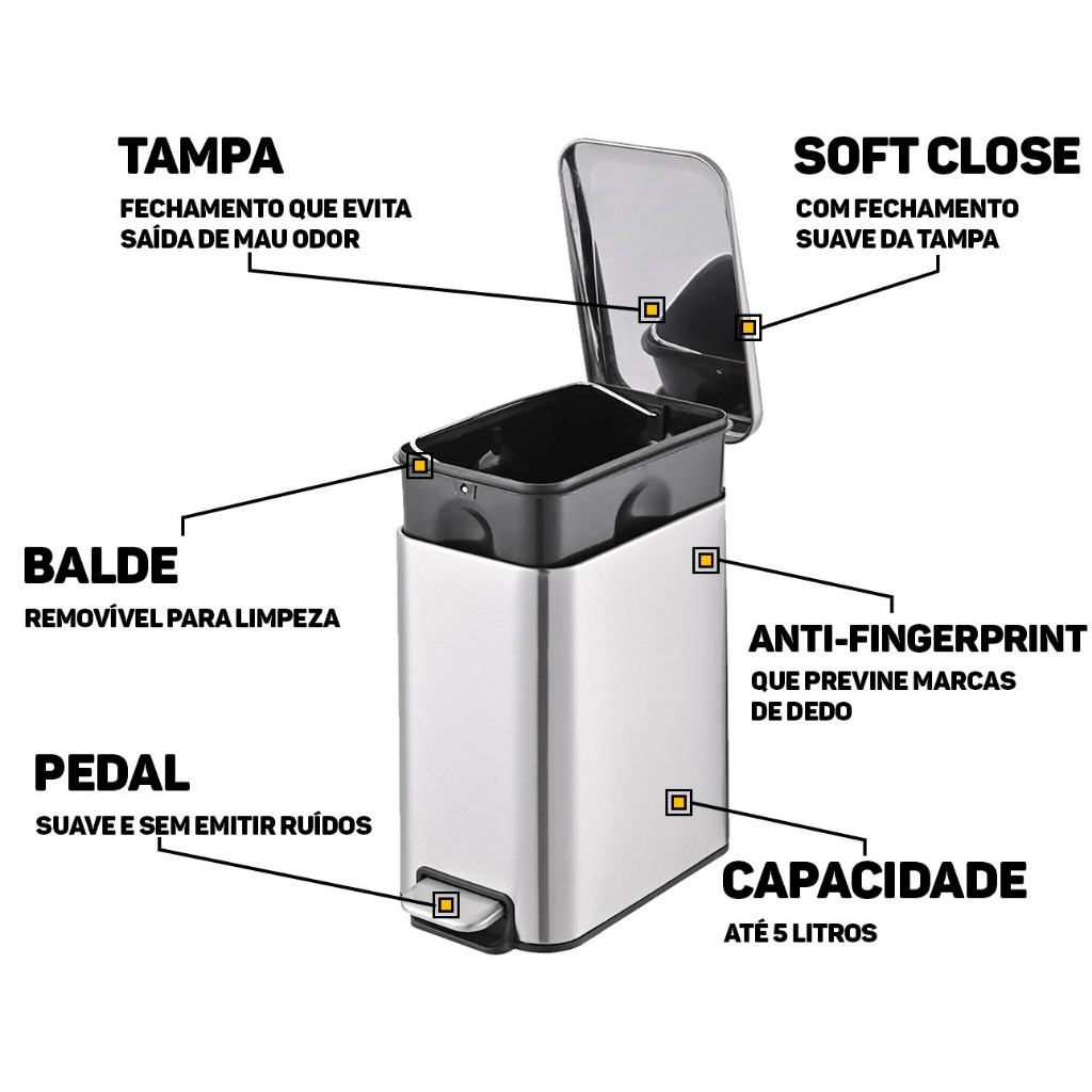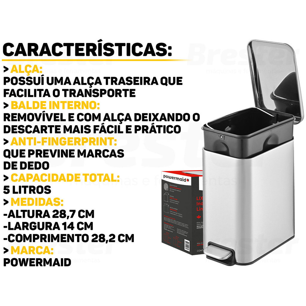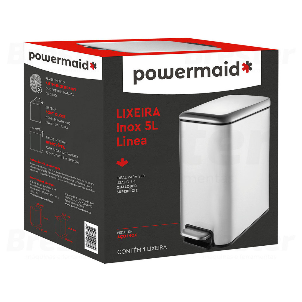 Lixo Lixeira Soft Close 5 Litros Aço Inox Pedal Balde Cesto Removível Slim Para Banheiro Lavabo Cozinha Fraldas Bebe Casa Restaurantes Pet Powermaid