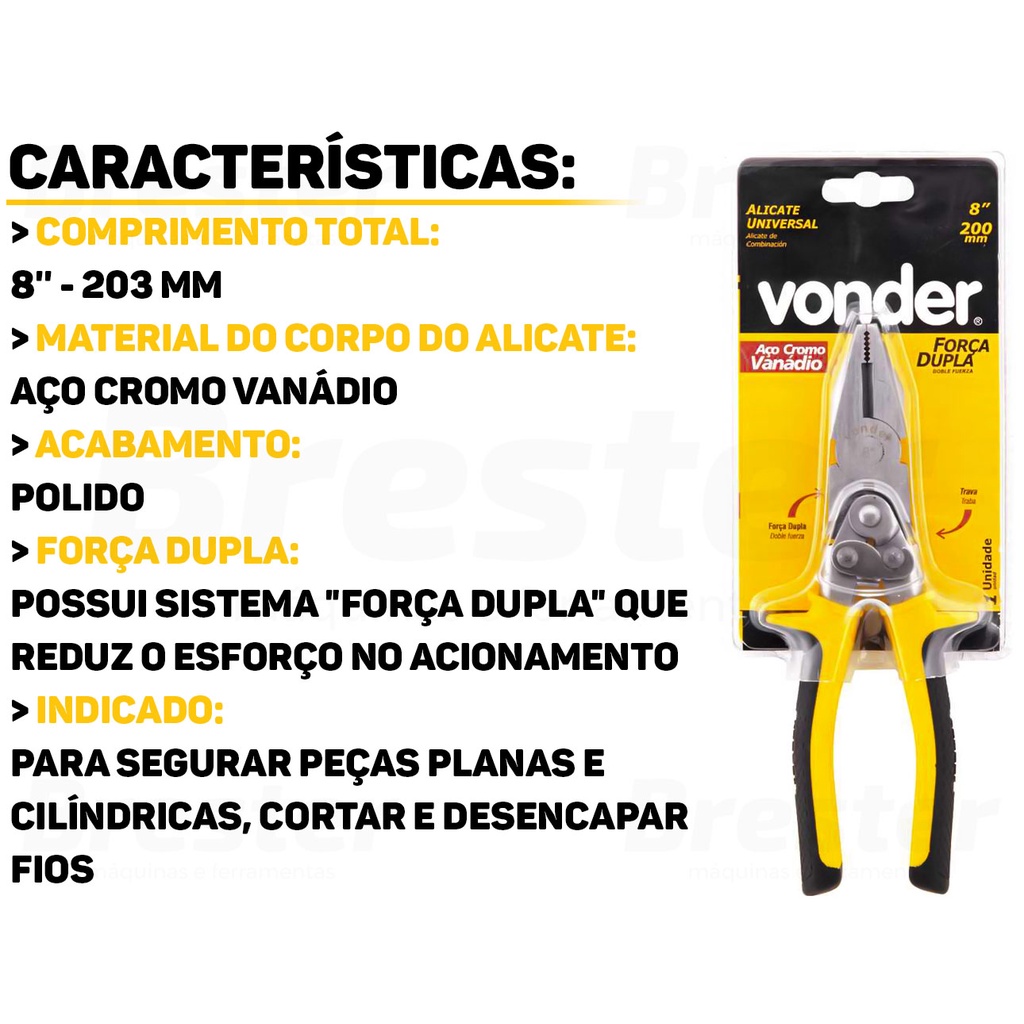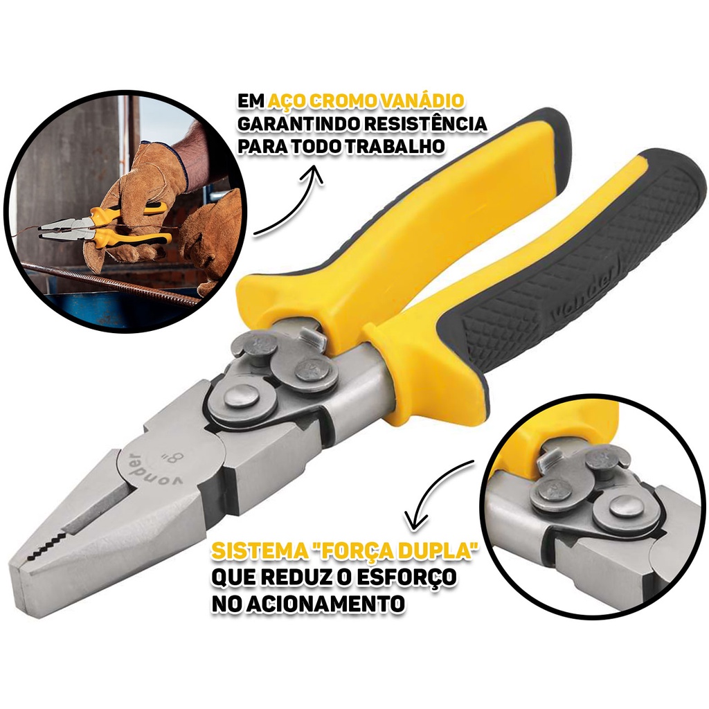 Alicate Universal Profissional Força Dupla 8 Polegadas Acabamento Polido C/ Trava Multiuso