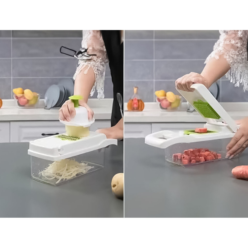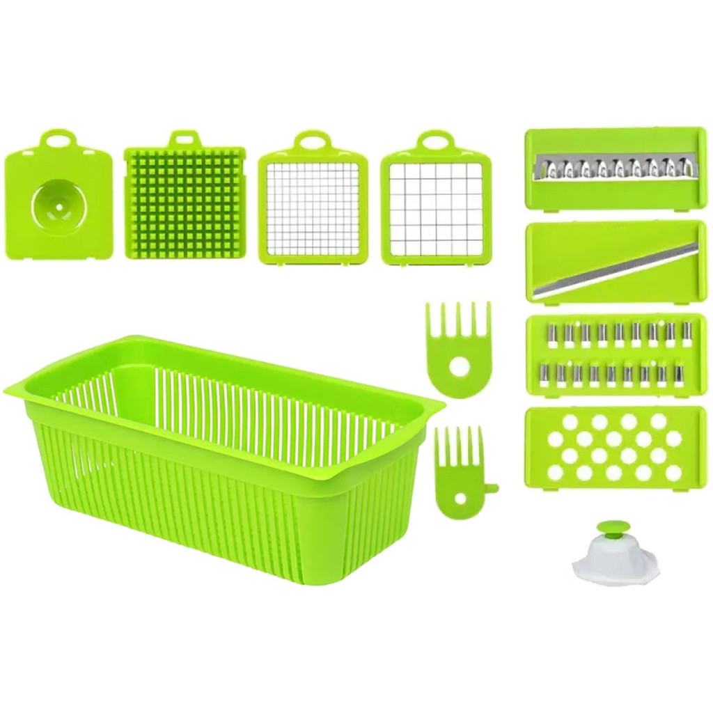 Cortador Ralador Triturador Manual Multifuncional Para Legumes Vegetais 13 Peças Plástico E Aço