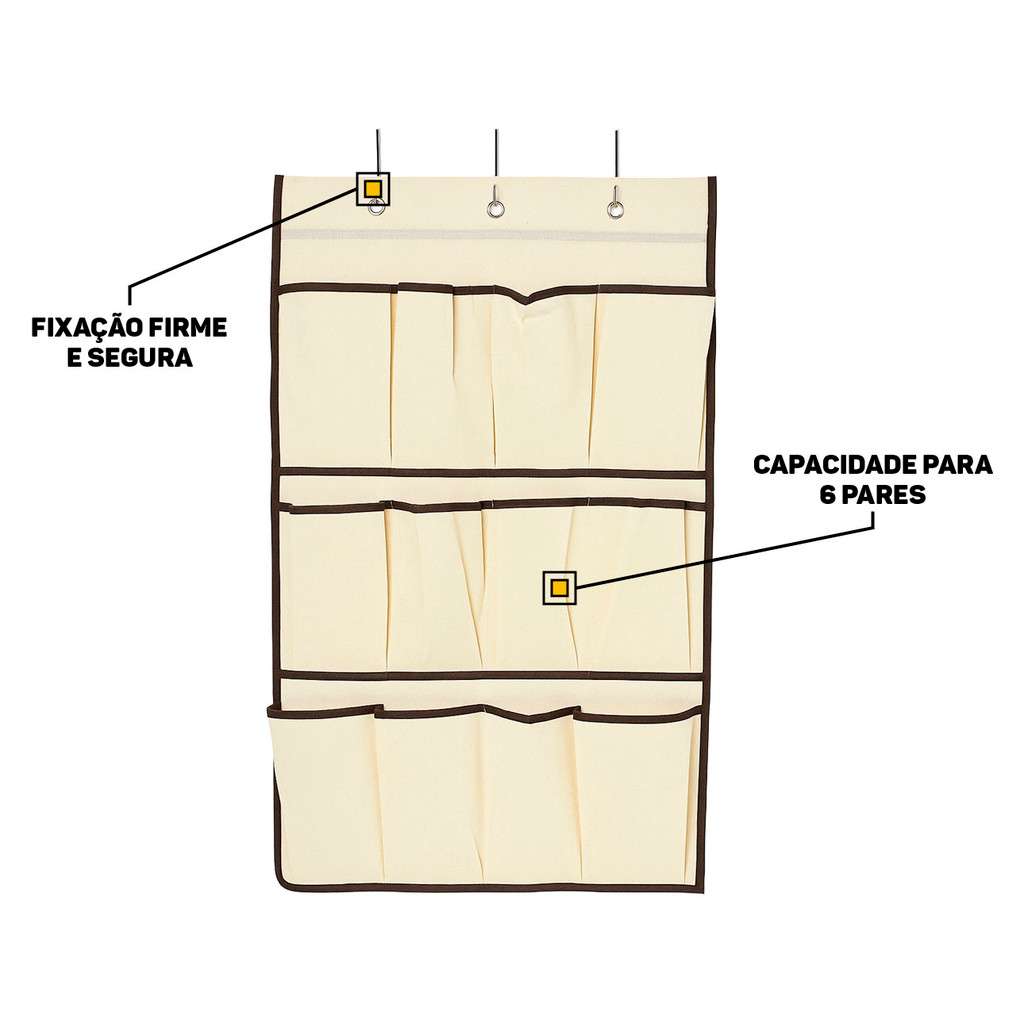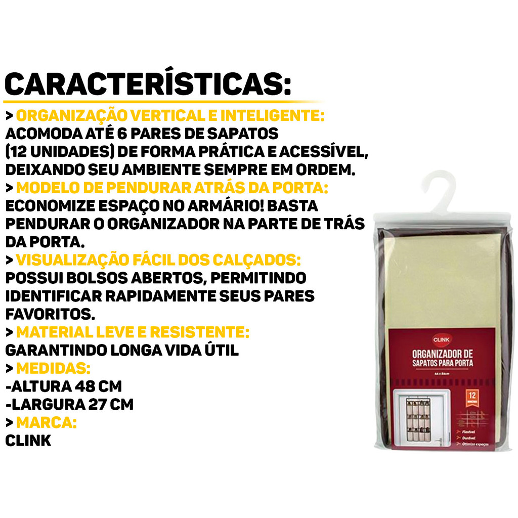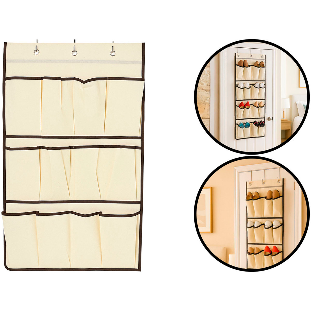 Sapateira Tecido Dobrável Suspensa Para Porta Organizador De Sapatos Multiuso 12 Divisórias Clink