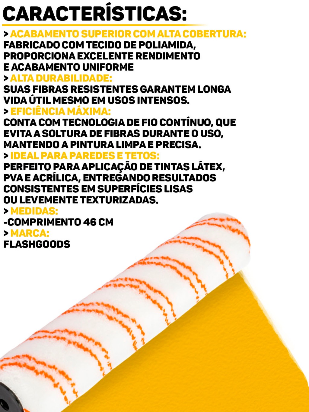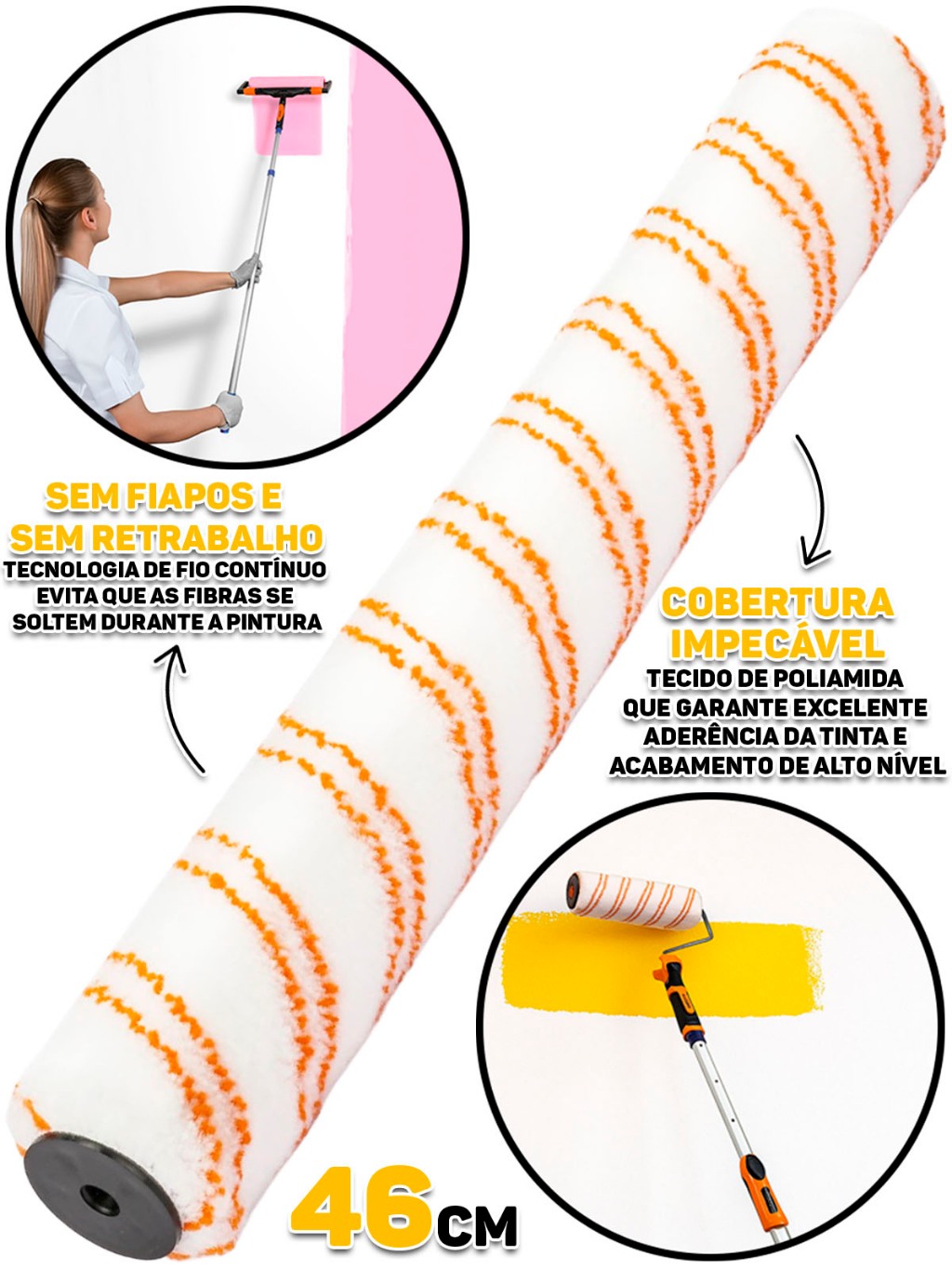 Rolo Para Pintura 46cm Paredes Tetos Multiuso Tinta Látex Acrílica Lã 100% Poliamida Profissional Sem Cabo