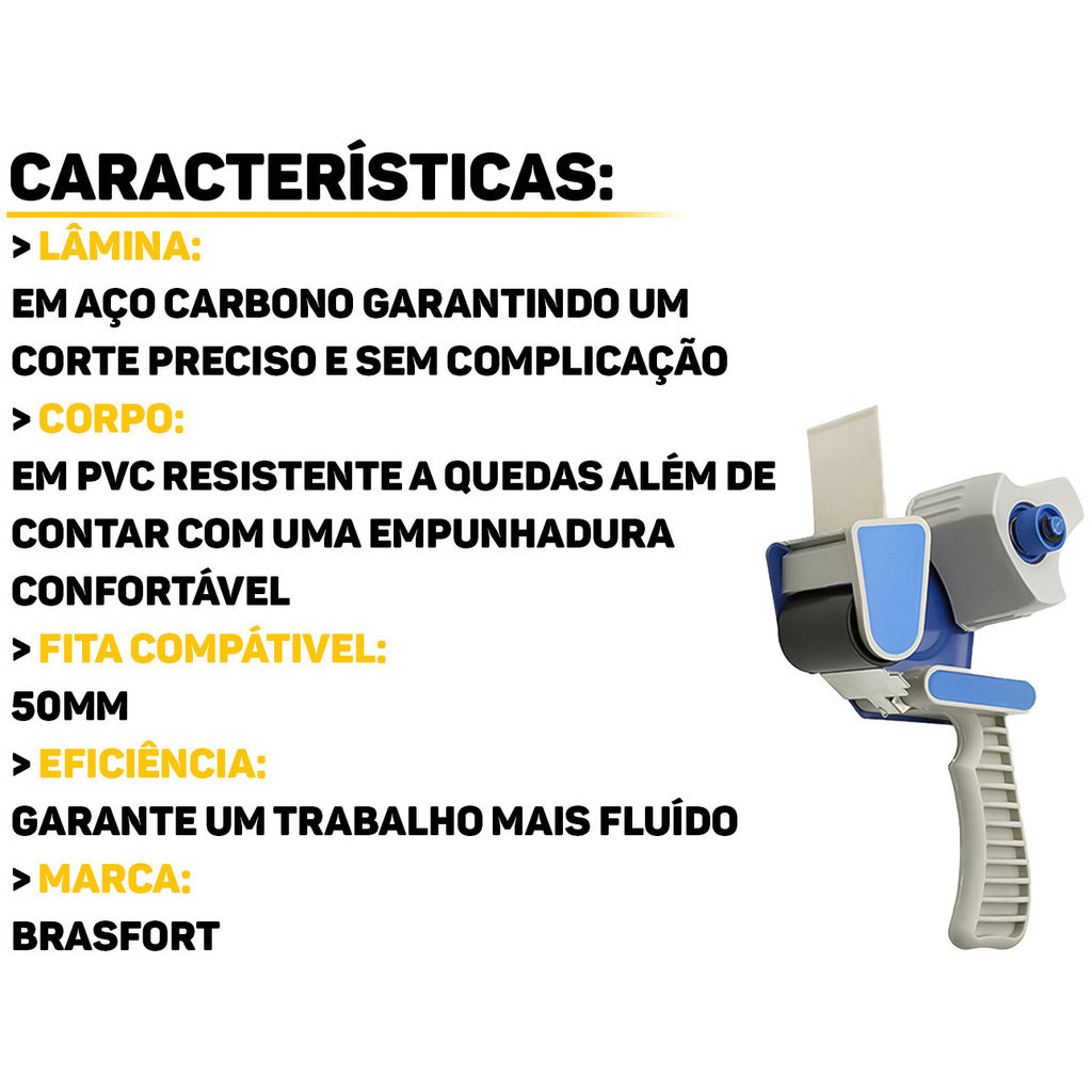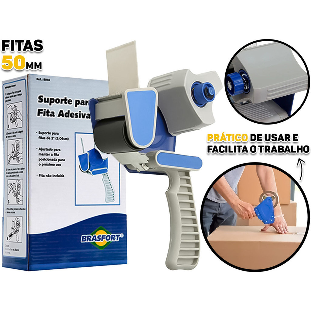 Suporte Manual Aplicador Cortador De Fita Adesiva Larga Lacrar Caixas Empacotamento Brasfort