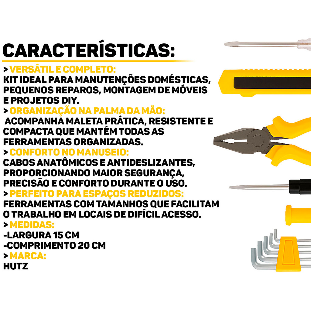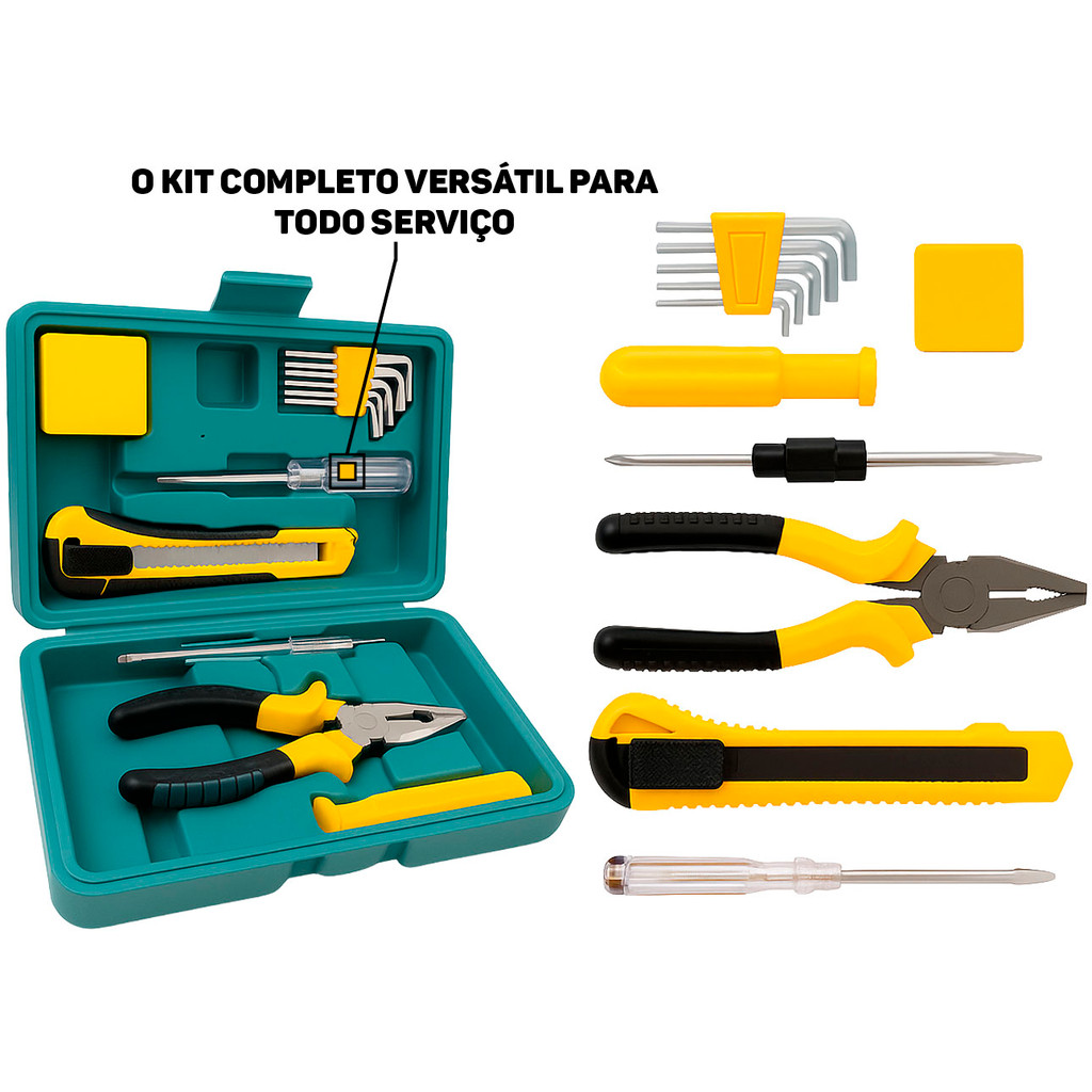 Kit Jogo De Ferramentas Alicate Estilete Chaves 12 Peças Com Maleta Organizadora Hutz