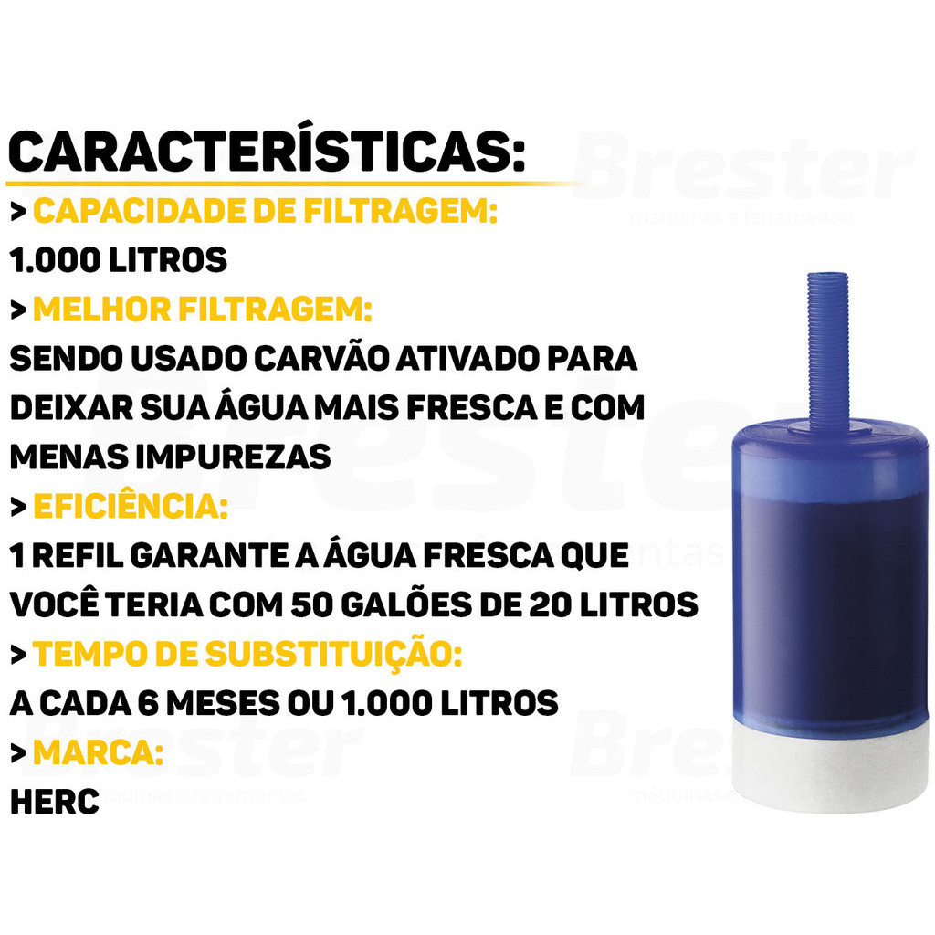 Refil Vela Filtro Purificador De Água Para Torneira Bebedouro Com Carvão Ativado Herc