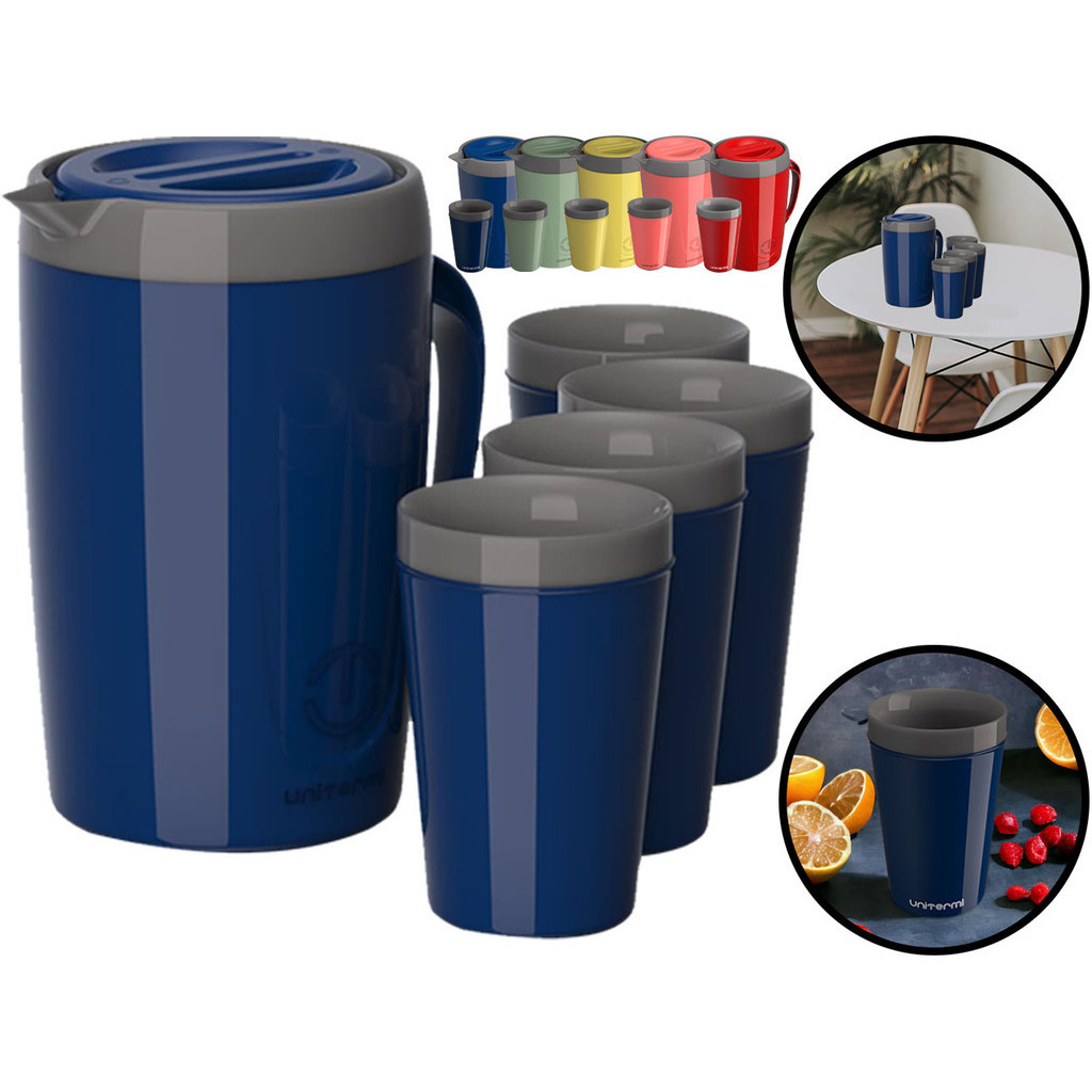 Kit Jarra Térmica Plástica Caribe 2 Litros Para Sucos Água + Quatro Copos Térmicos 350ml