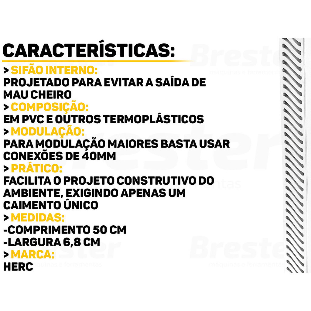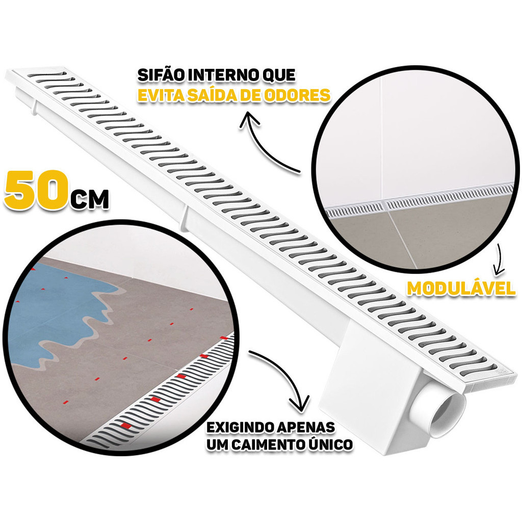 Ralo Linear Modulável Com Grelha E Sifão Interno Para Banheiro Sacada Lavabo 50cm Herc
