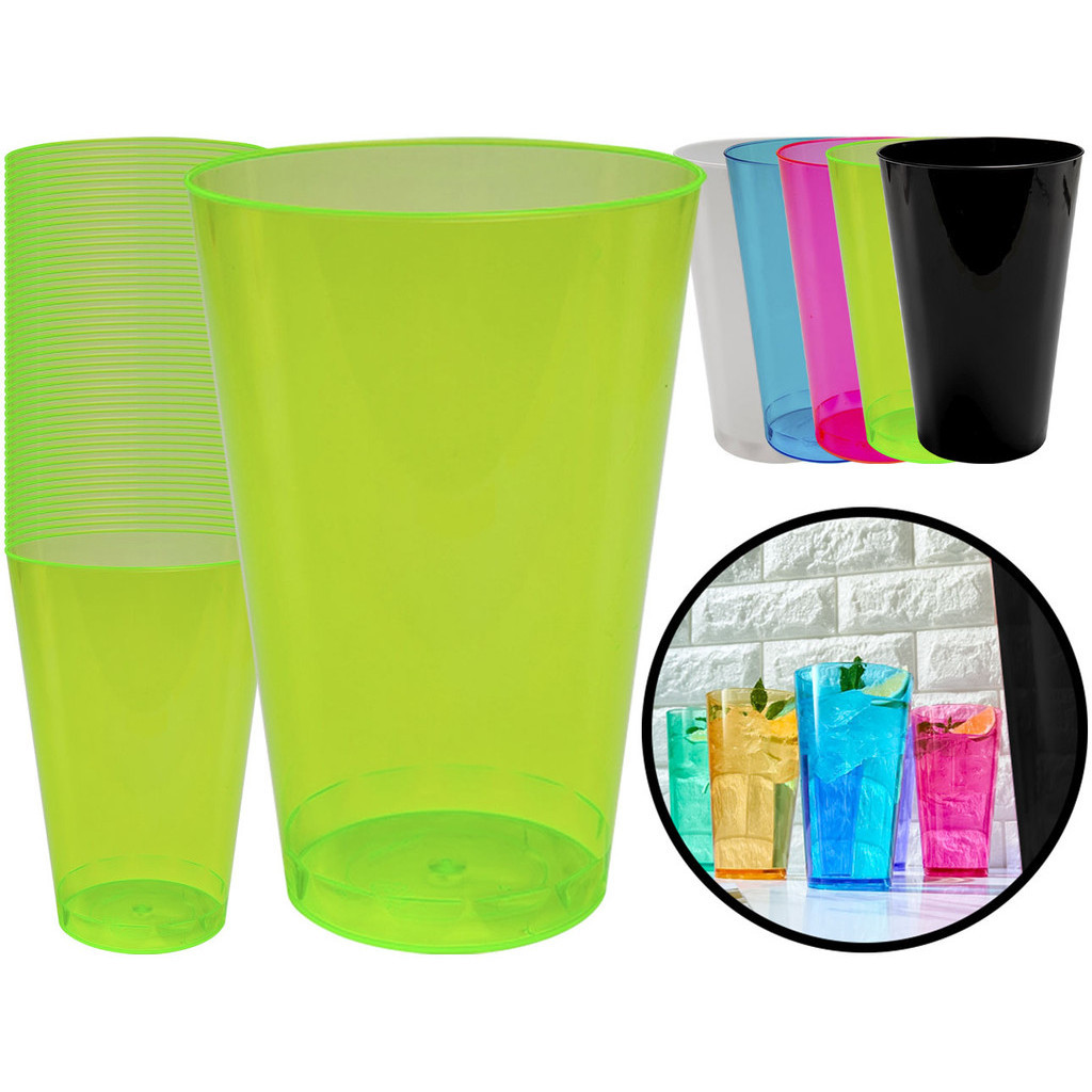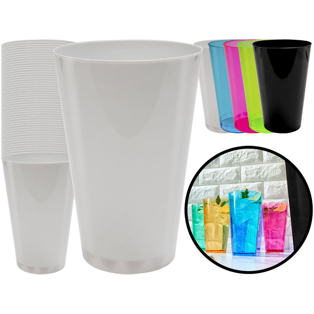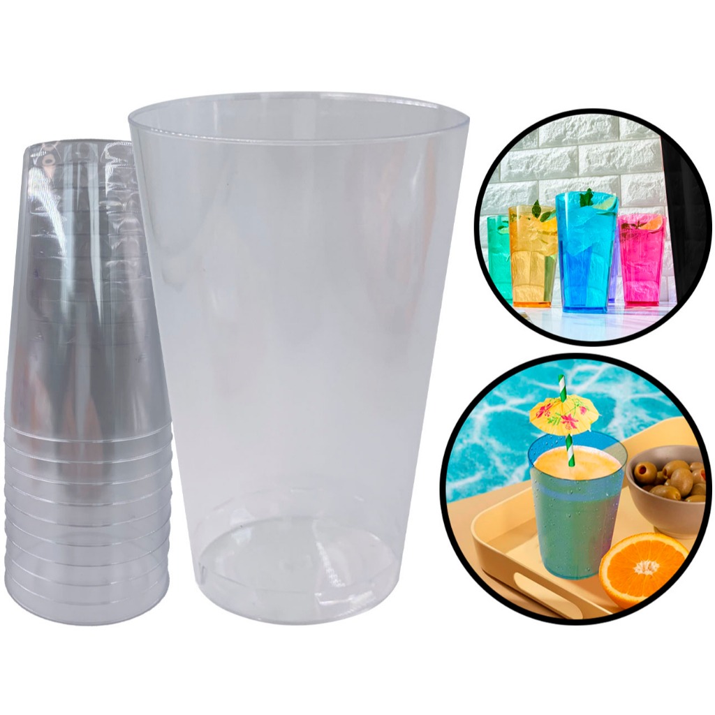 Kit 50 Copos Copo 300ml Festa Bebidas Refri Sucos Descartável Lavável Acrílico Resistente Cores