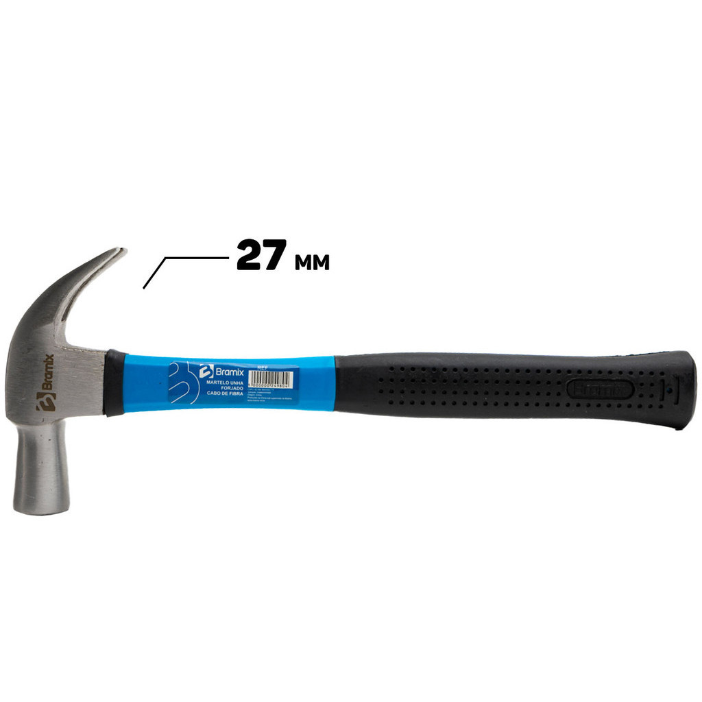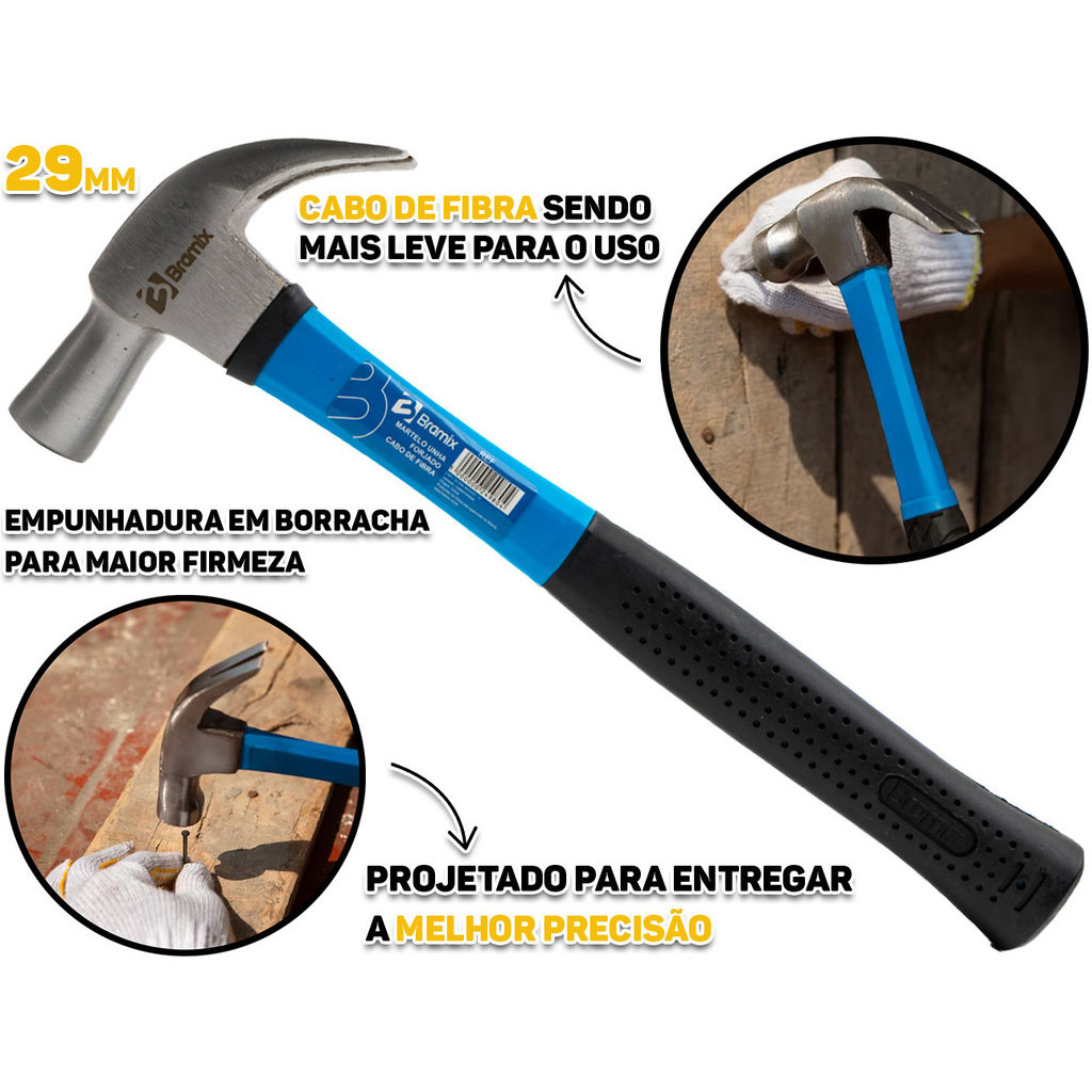Martelo Unha Curvo Aço Forjado Com Cabo Em Fibra De Vidro Emborrachado 27mm Bramix