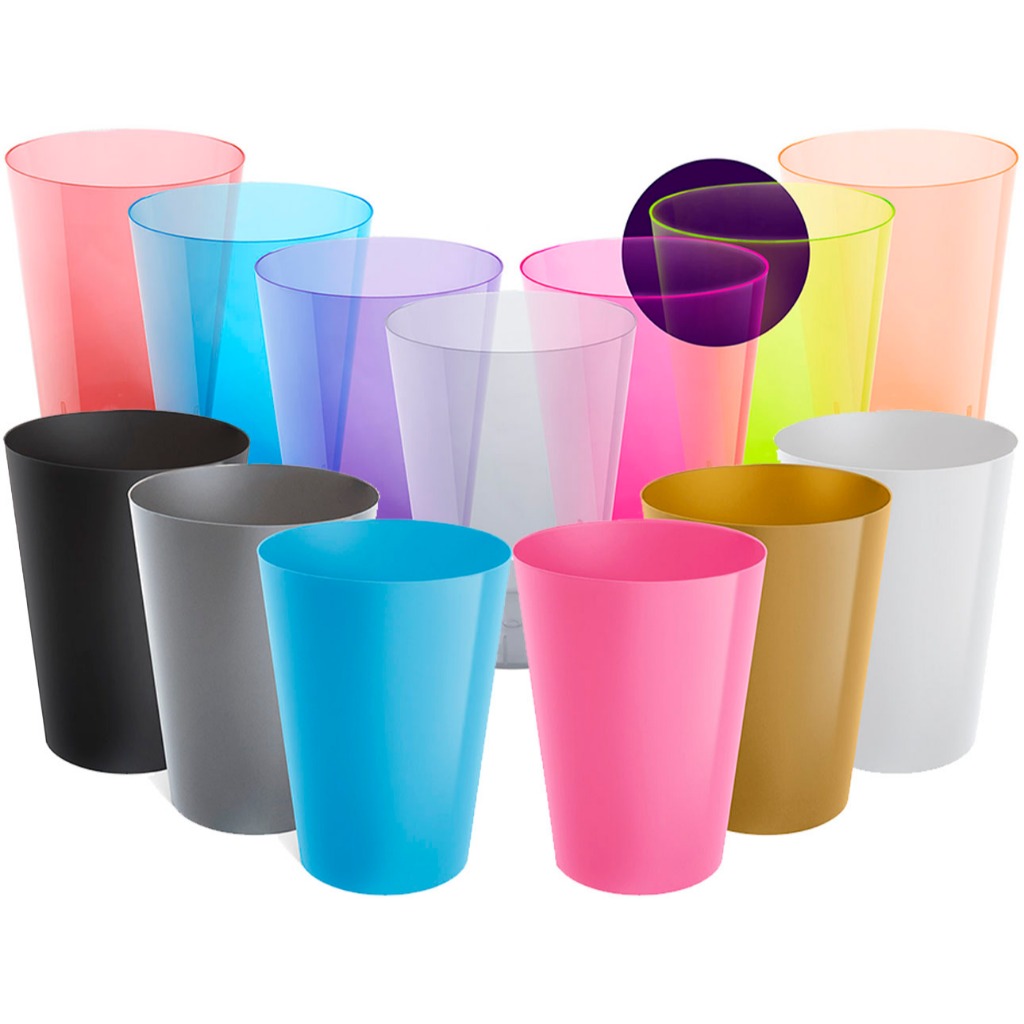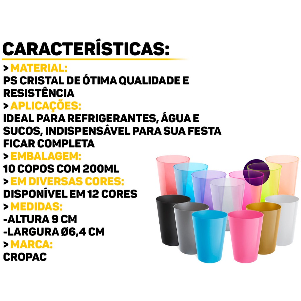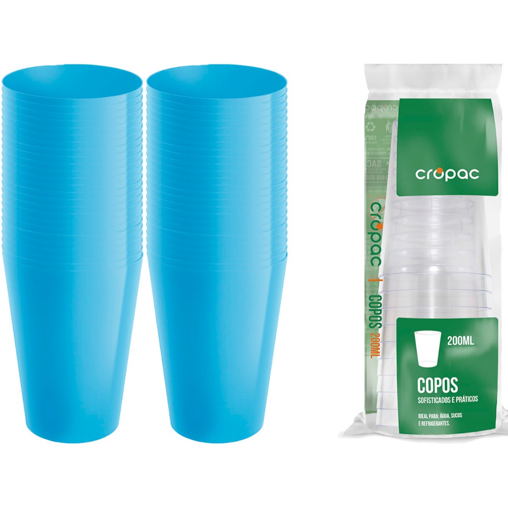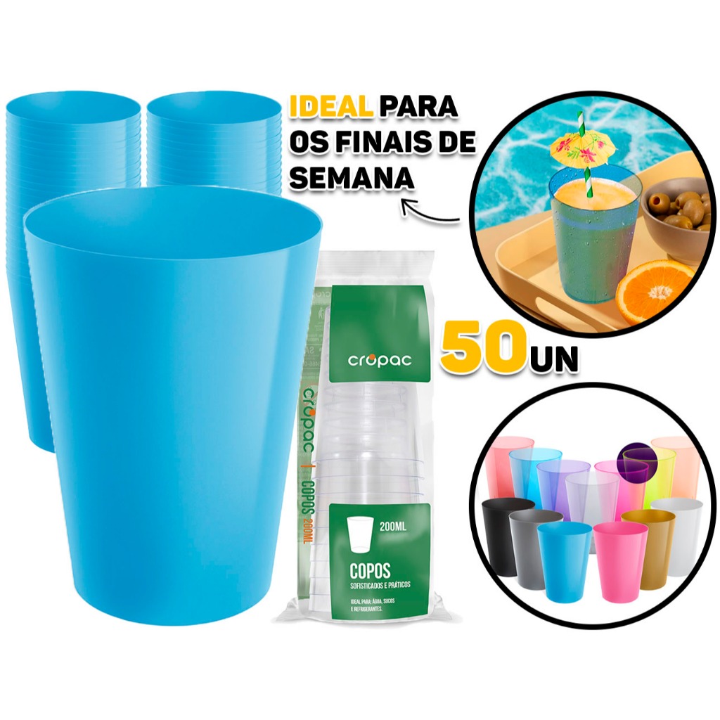 Kit 50 Copo Copos 200ml Plástico Acrílico Lavável Resistente Bebidas Drinks Suco Refri Coloridos