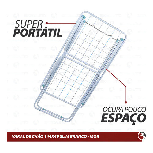 Varal De Chão Abas 144cm Dobrável Retrátil Aço Reforçado Mor