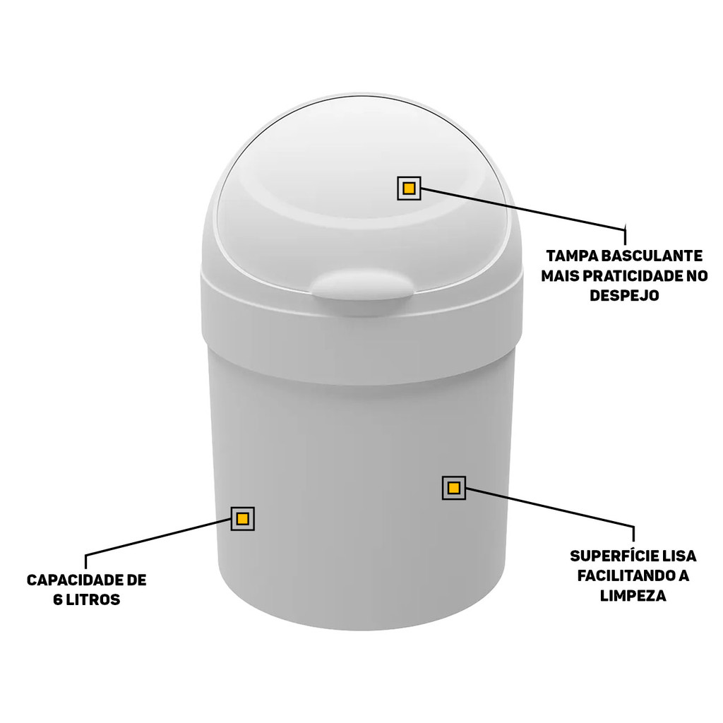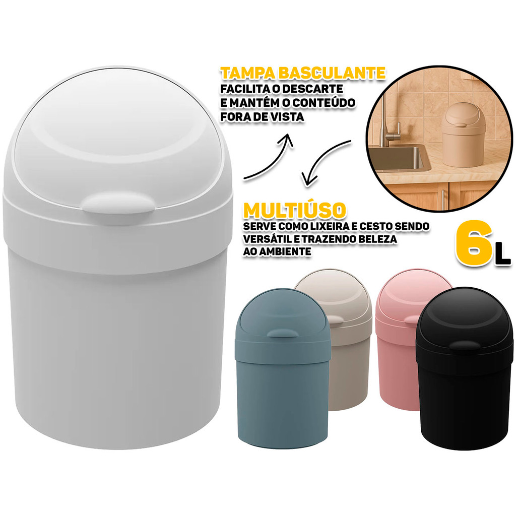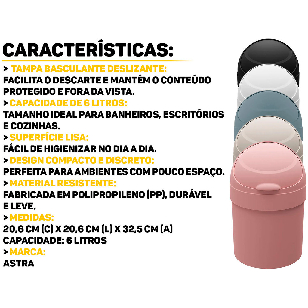 Lixeira Tampa Basculante Cesto Multiuso Para Banheiro Escritório Cozinha 6 Litros Astra