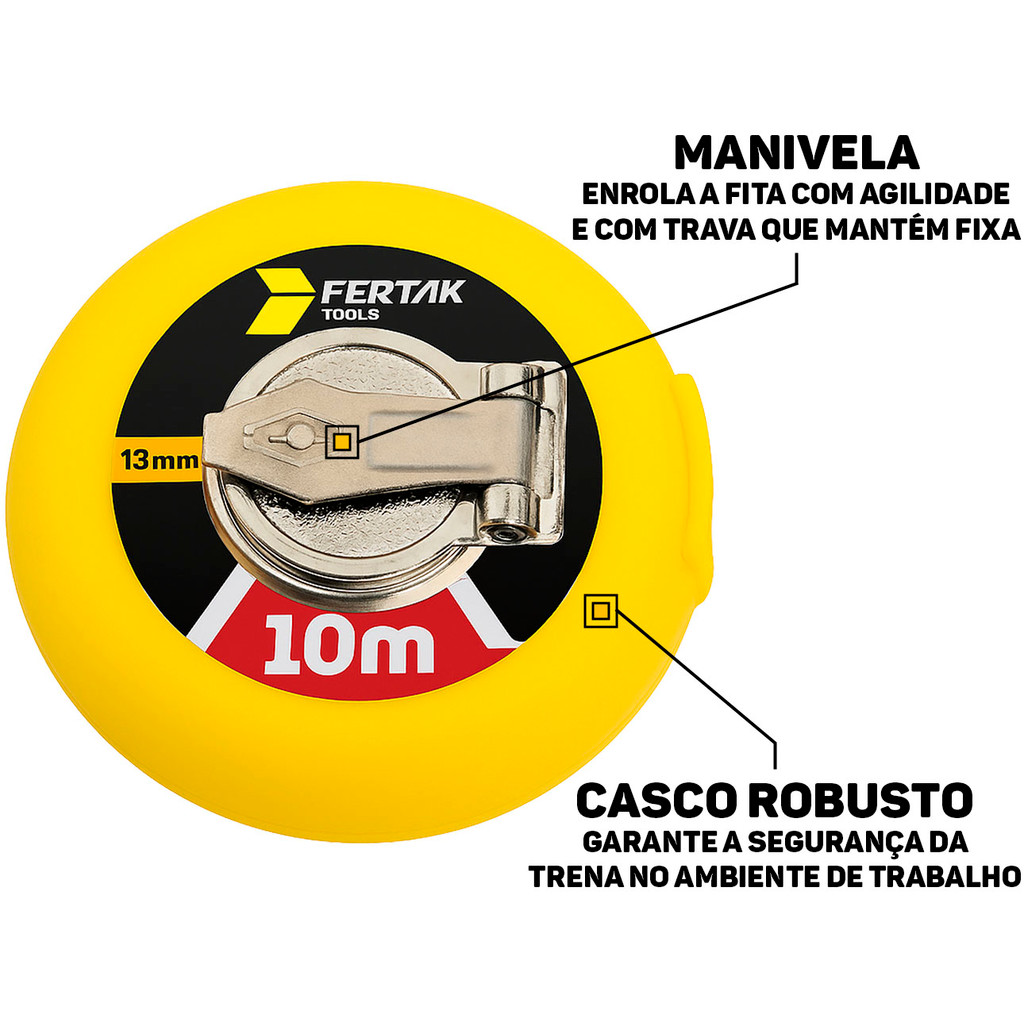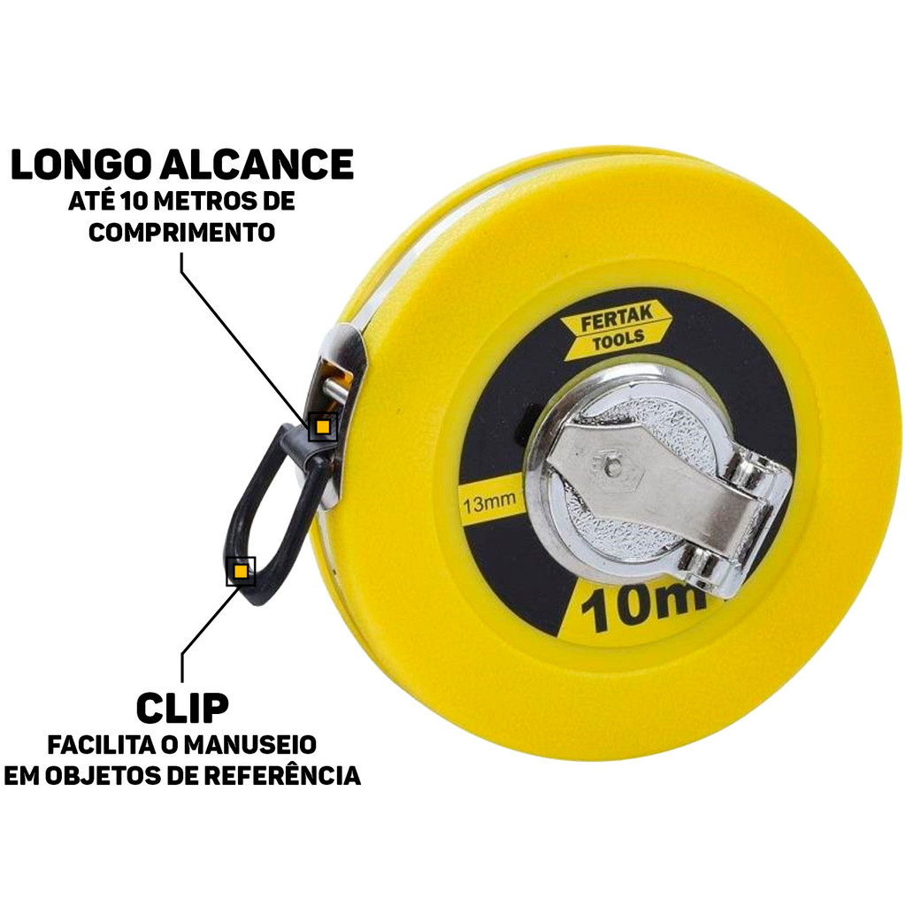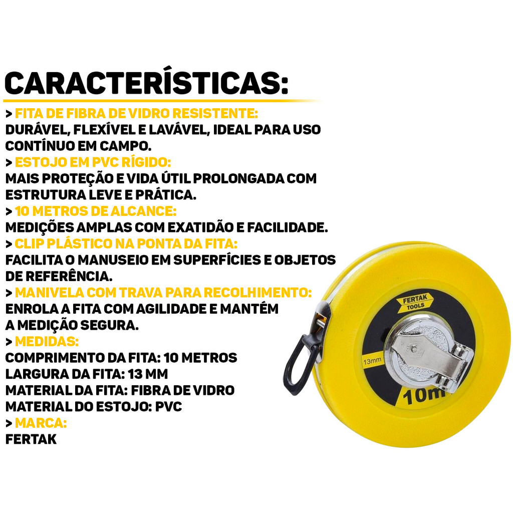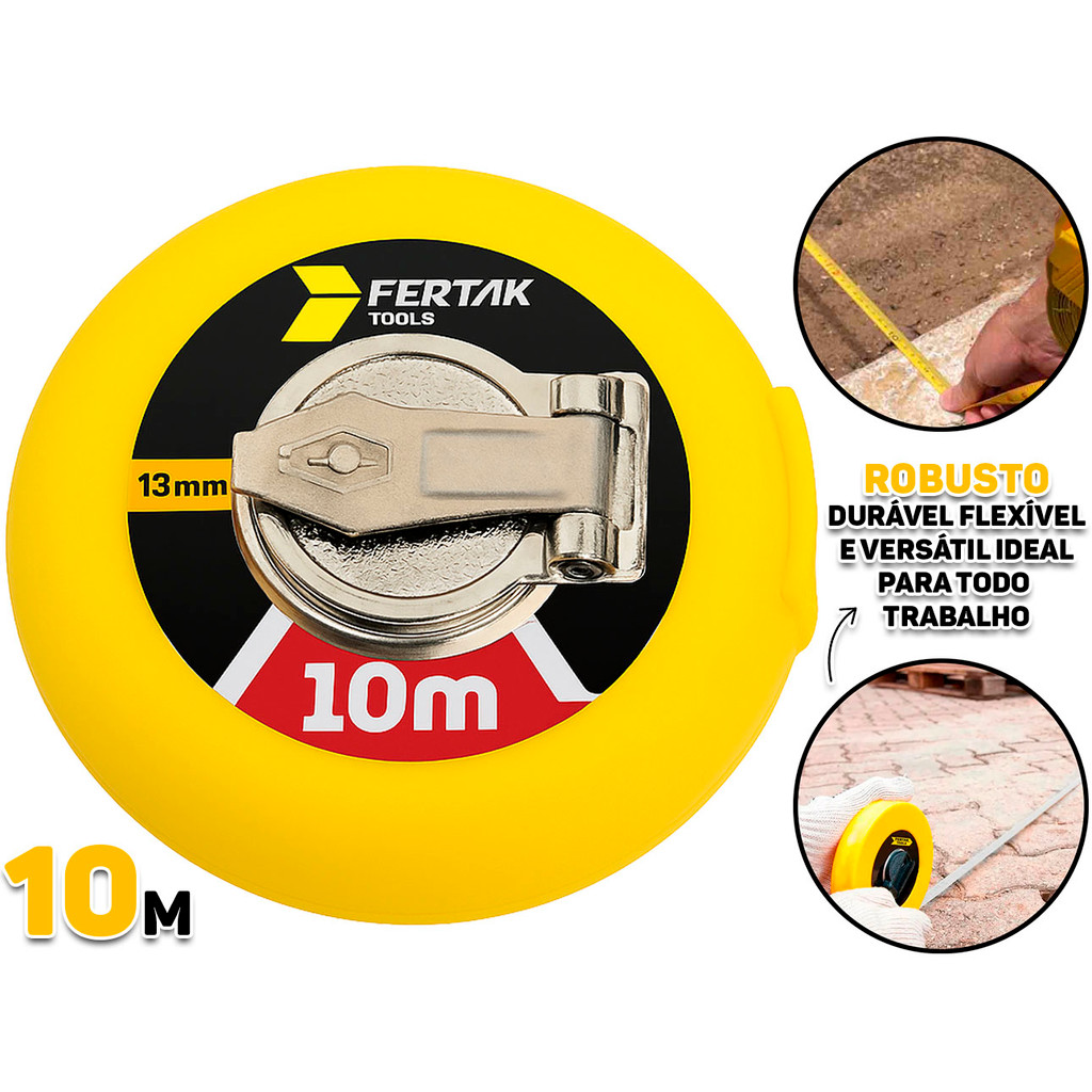 Trena Fita Métrica Fibra De Vidro 10m Fertak Estojo P/ Obras Medição Construção Pedreiro