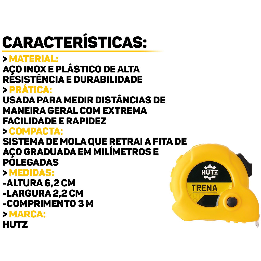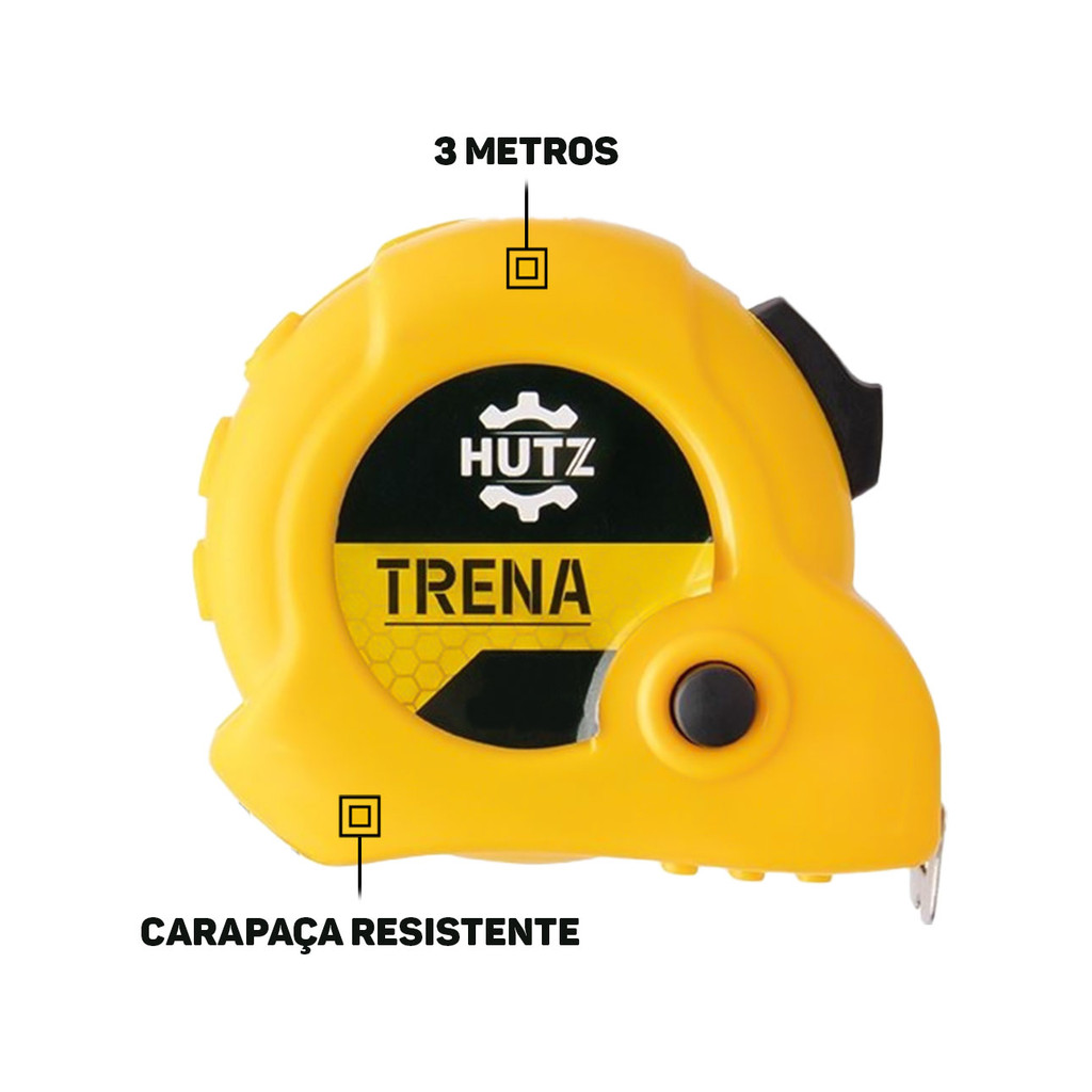 Trena De Bolso Plástica Fita Métrica Aço Inox Com Trava 3m x 16mm Profissional Para Construção Carpintaria