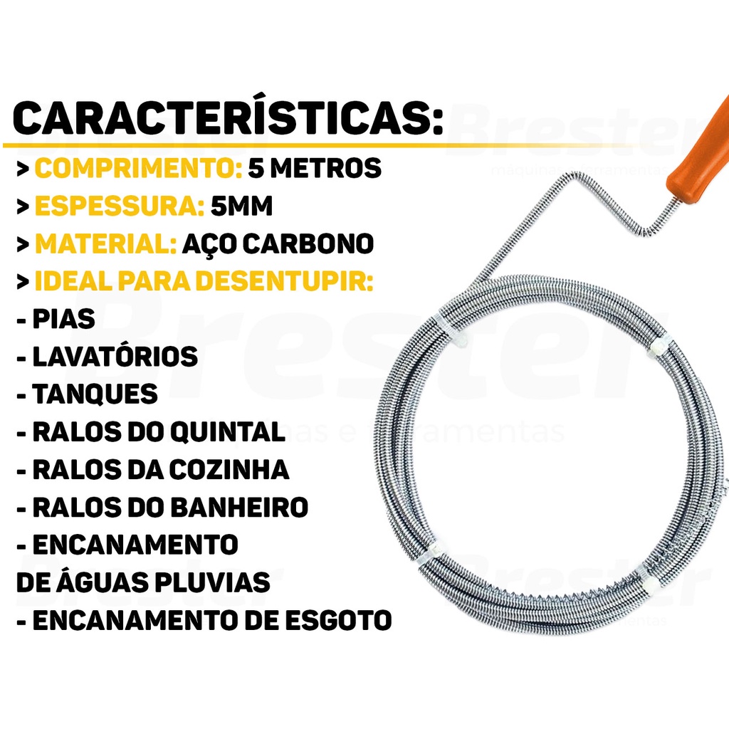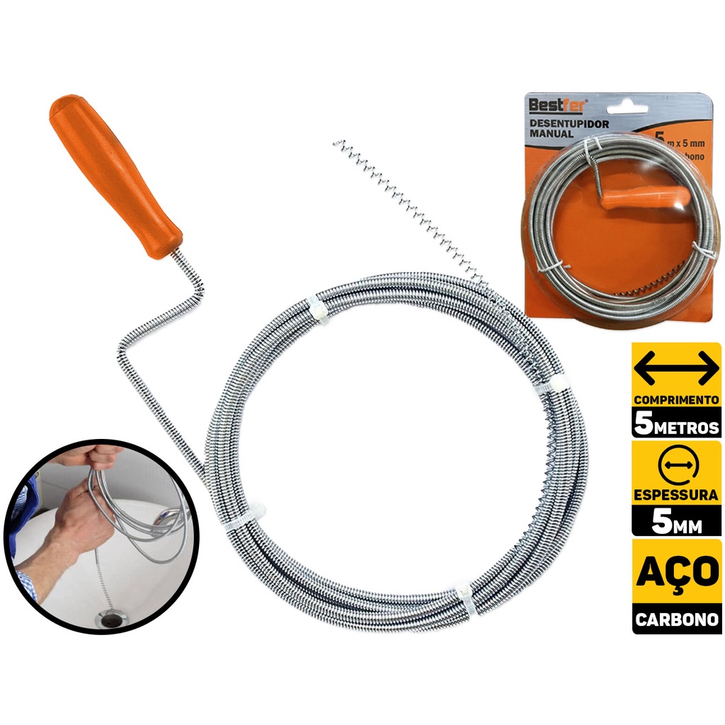 Cabo De Inox Para Desentupir Tubulação Banheiro Calha Grande Bestfer BFH1478