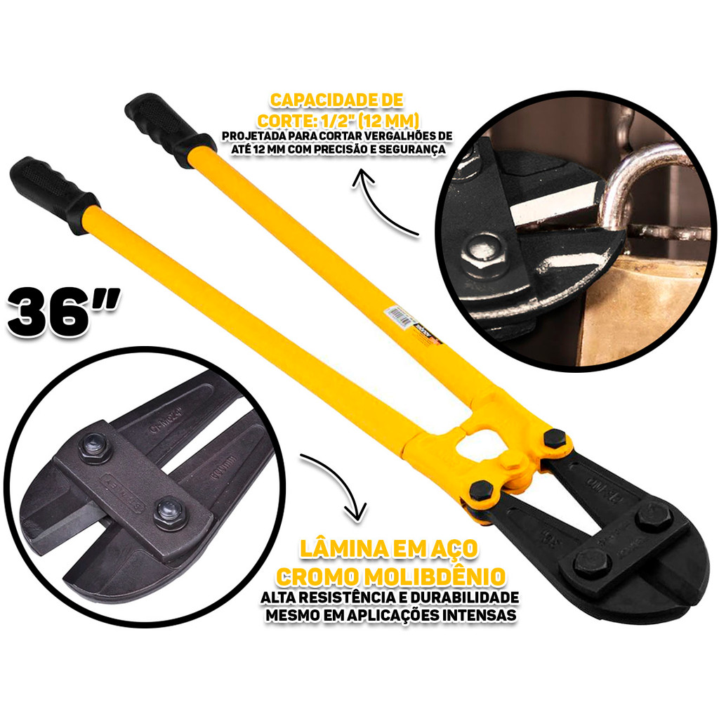 Tesoura Alicate Profissional Corta Vergalhão Cadeado Arame 36 Polegadas Lâmina Aço Cabo Emborrachado