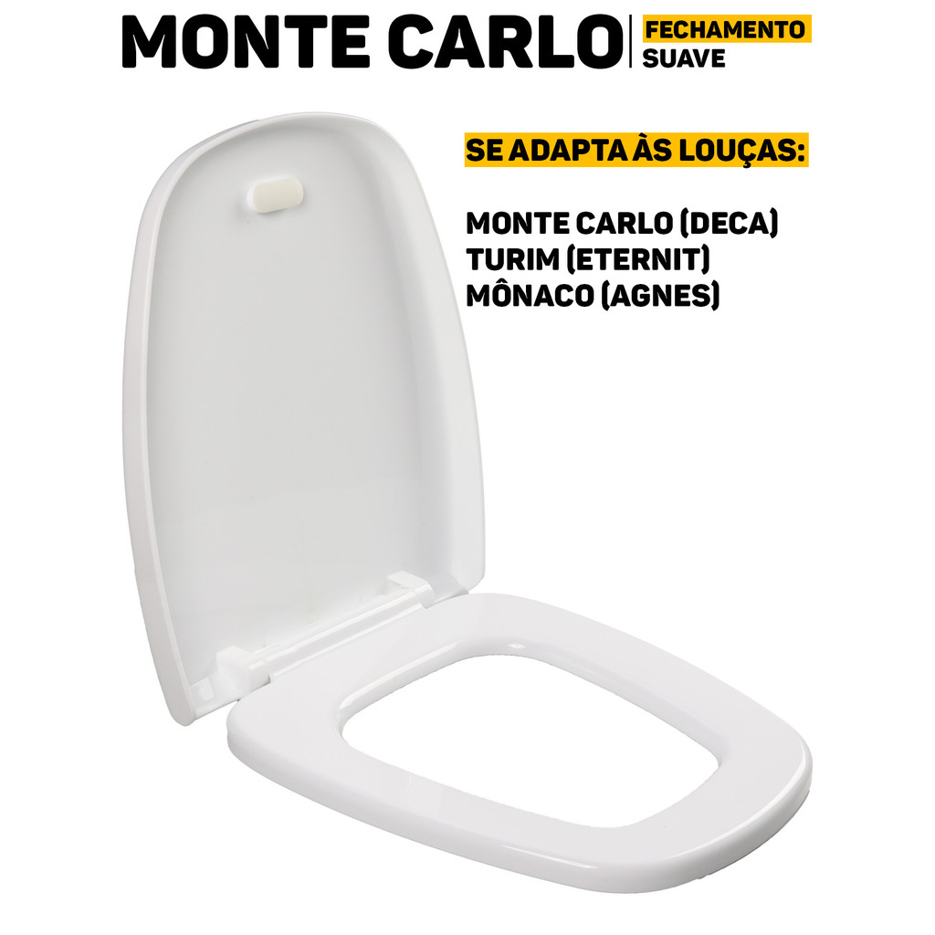 Assento Sanitário Tampa Vaso Smart Soft Close Monte Carlo Fechamento Suave Atlas Baixa Devagar Não Bate