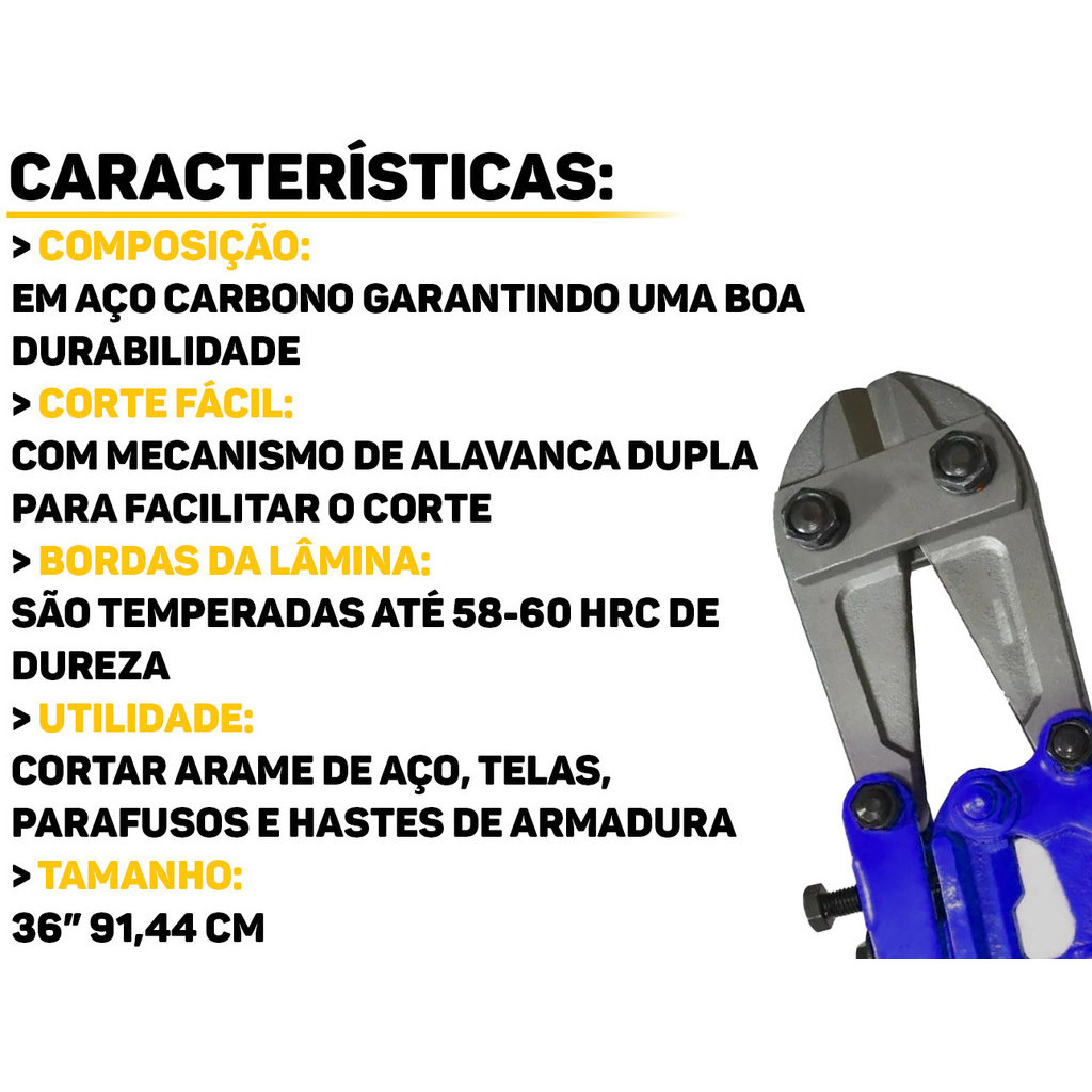 Tesoura Alicate Para Cortar Vergalhão Parafusos Cabos Pinos Lâmina Em Aço Polido 36 Polegadas