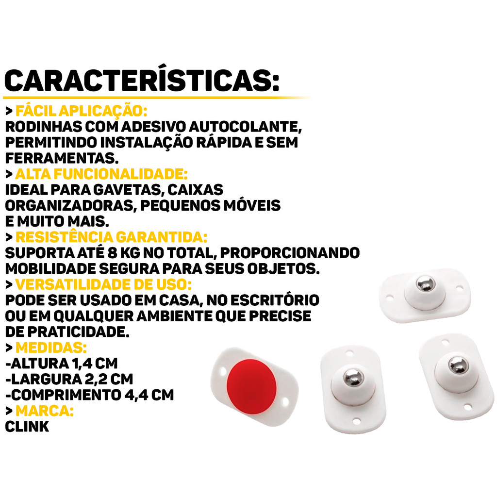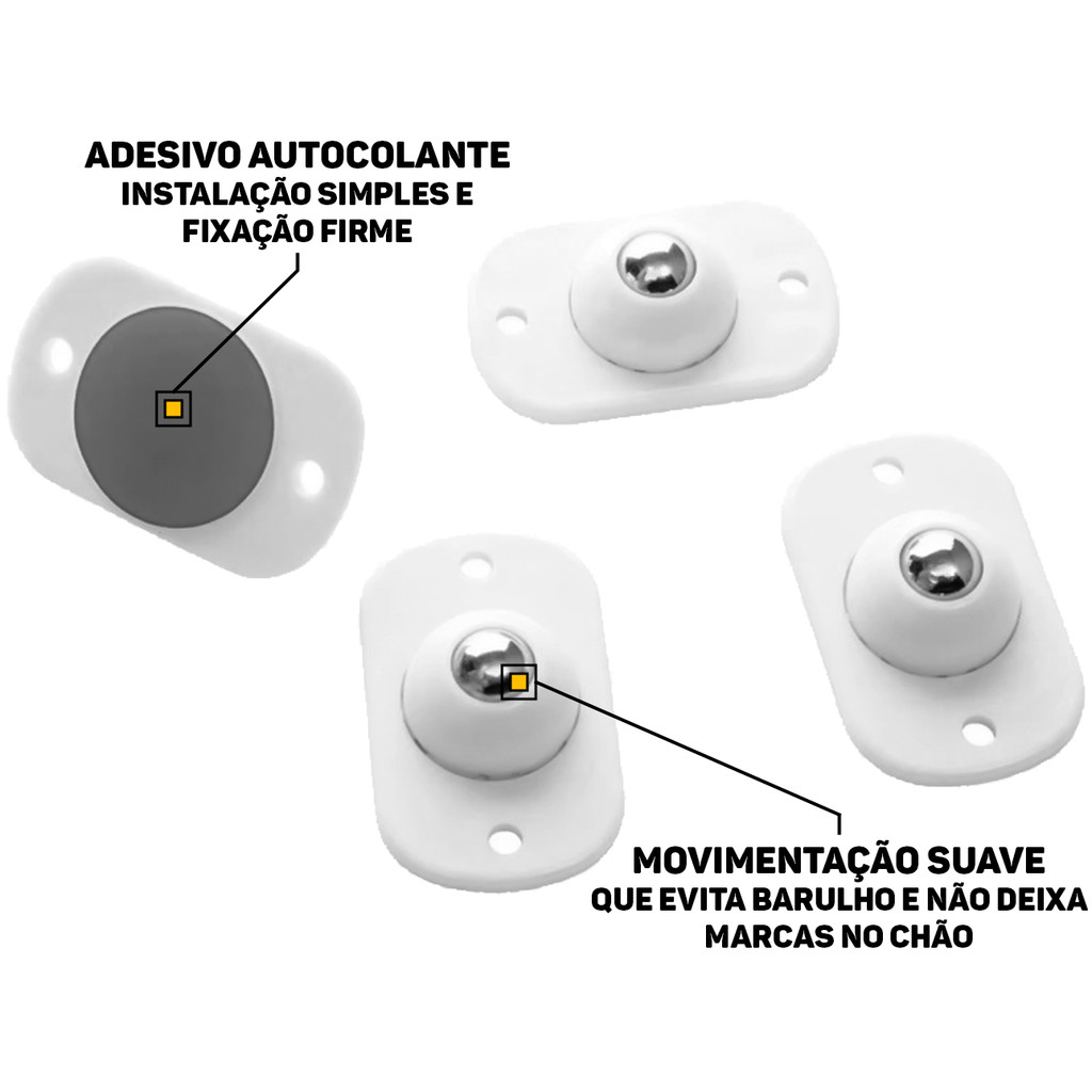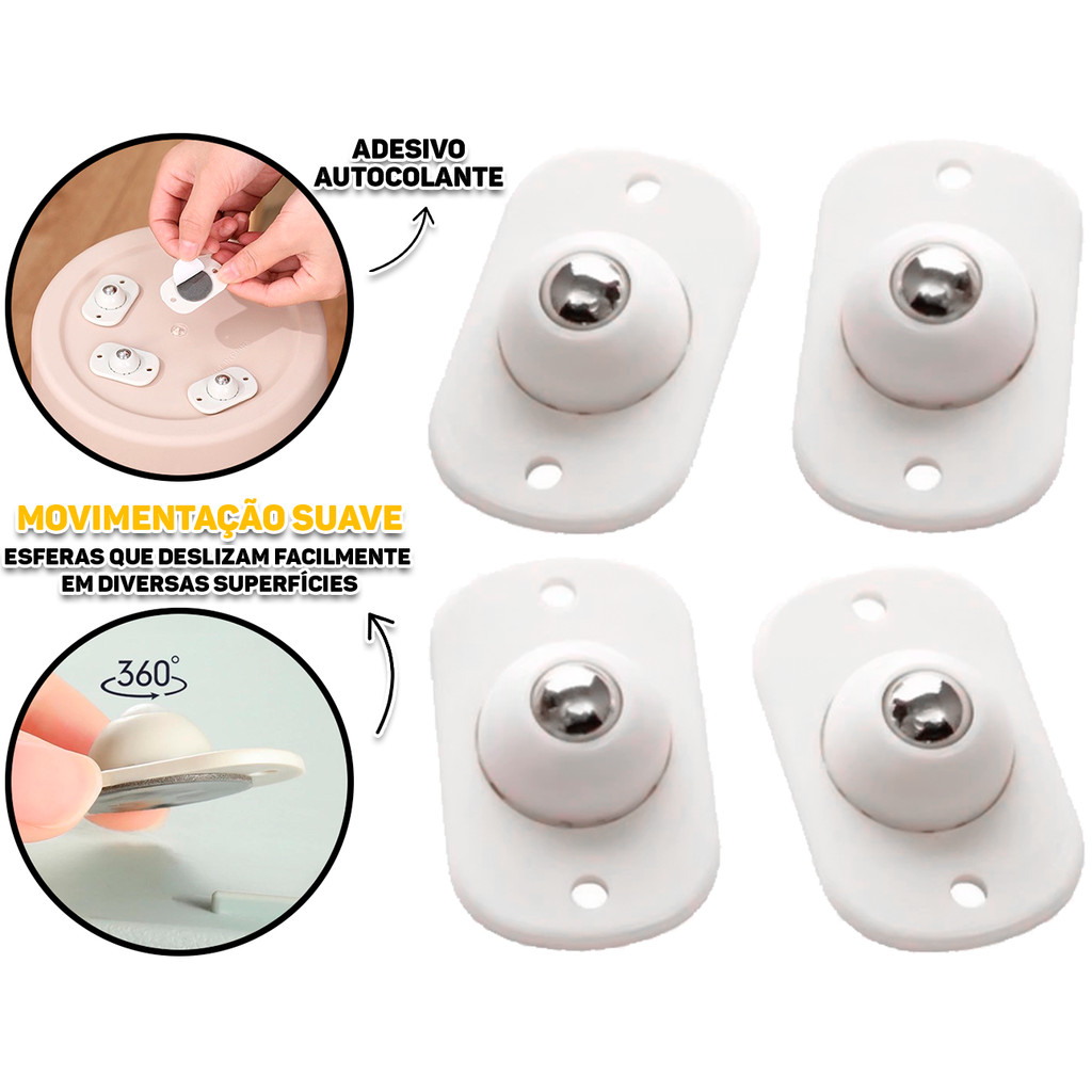 Conjunto Rodinhas Adesivas Esferas Giratórias Para Móveis Objetos Cadeiras Multiuso 4 Peças Clink
