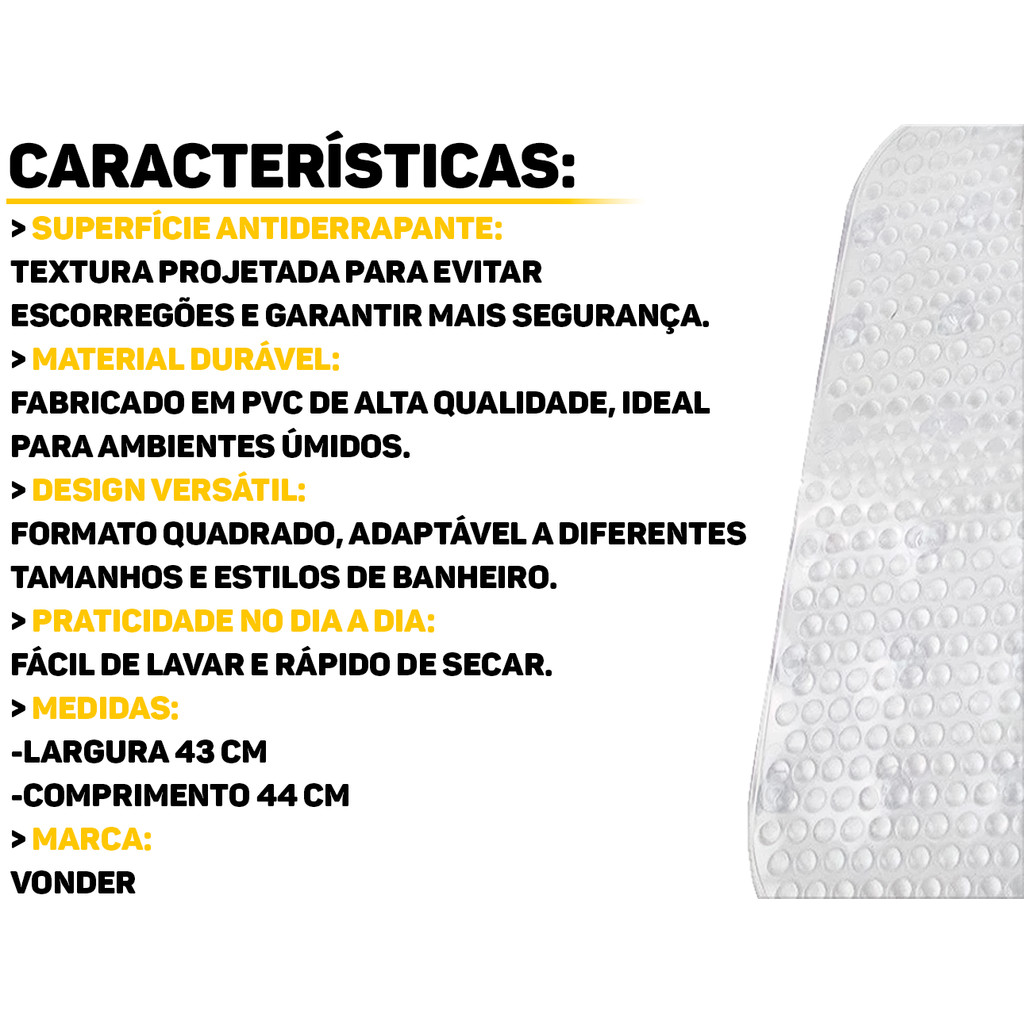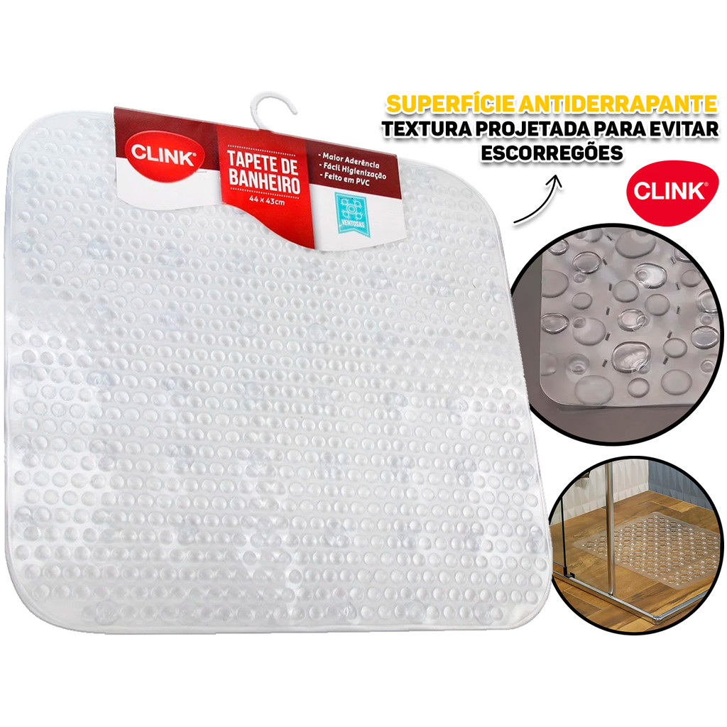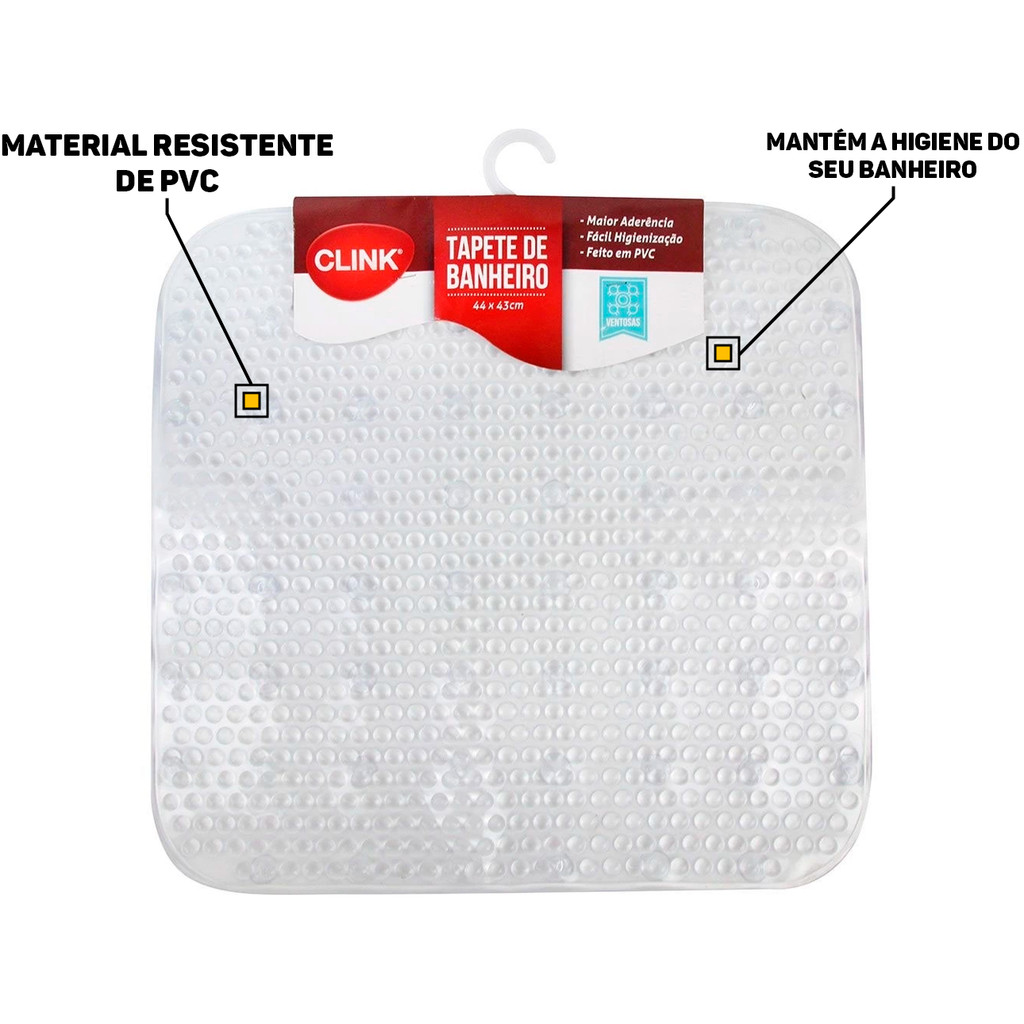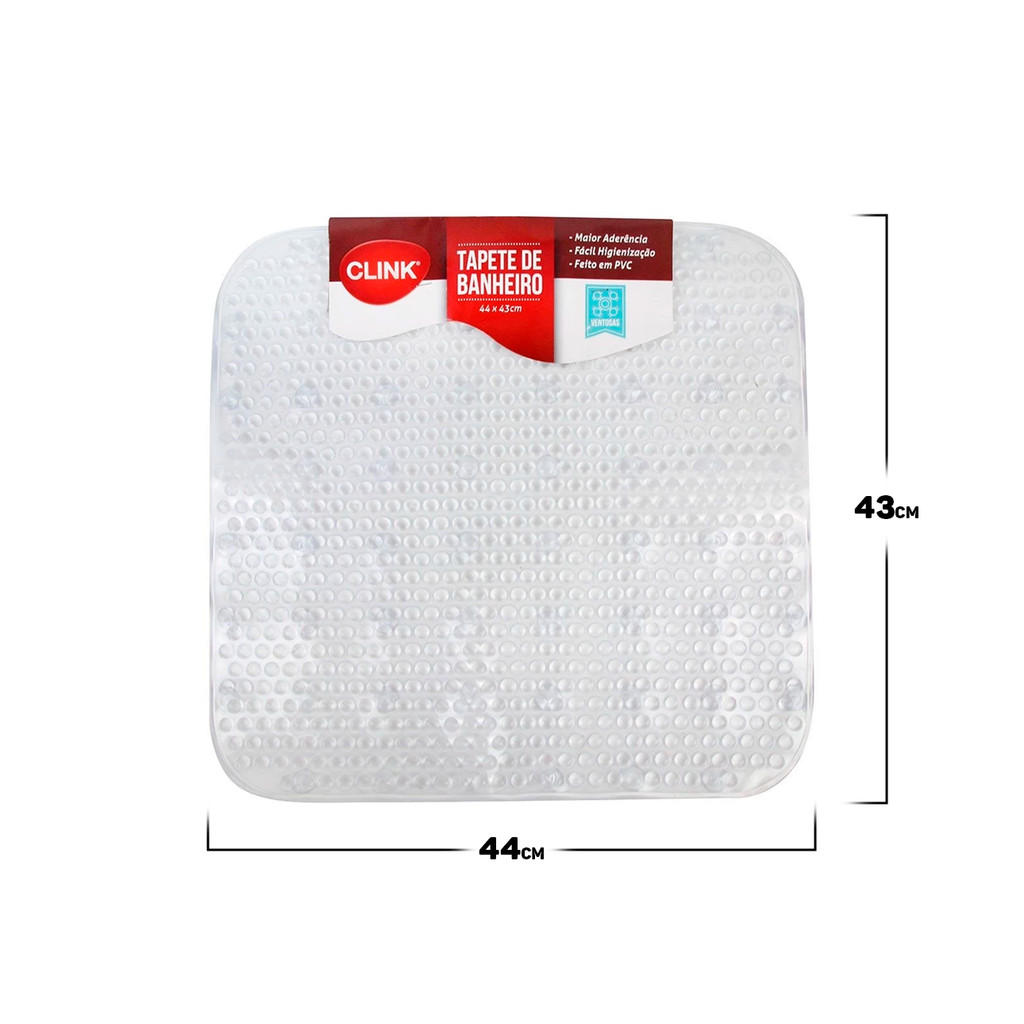 Tapete Plástico Quadrado Antiderrapante Piso Banheiro Lavabo Box 44cm x 43cm Clink