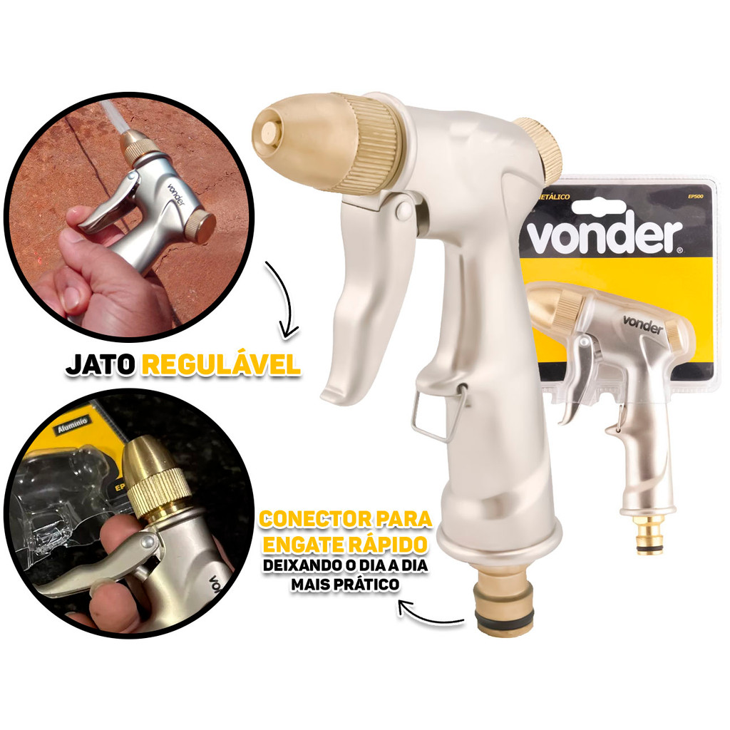 Esguicho Metálico Tipo Pistola Bico Regulável P/ Jardinagem Com Engate Rápido Vonder