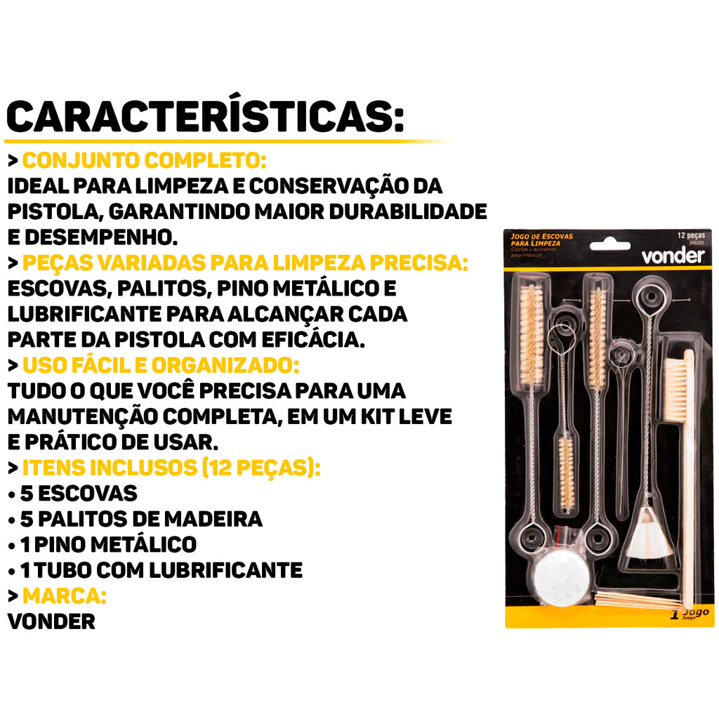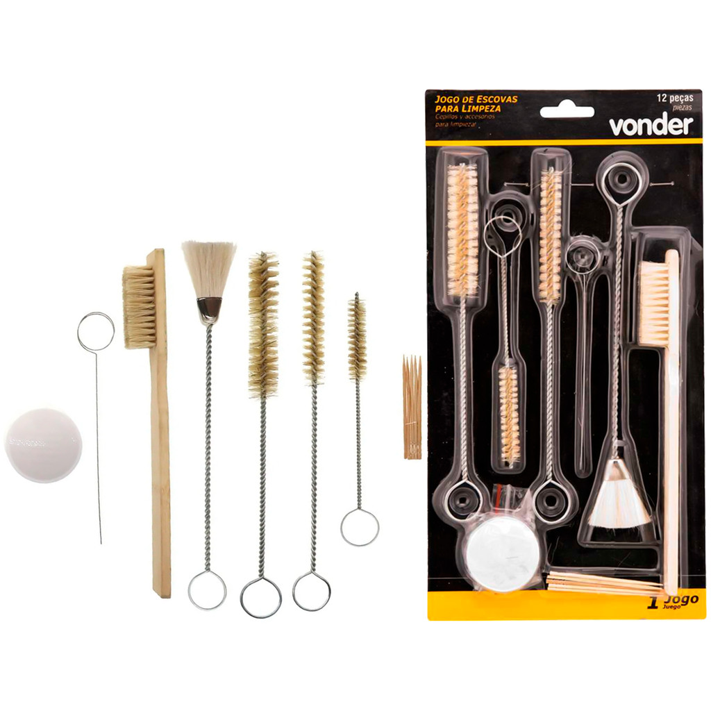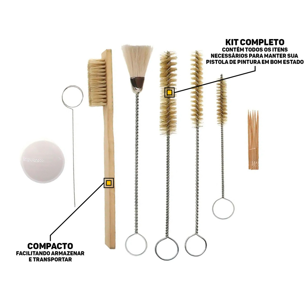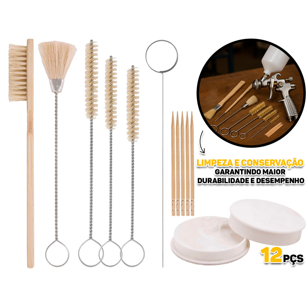 Jogo Escovas De Limpeza Manutenção Para Pistolas De Pintura + Acessórios 12 Peças Vonder
