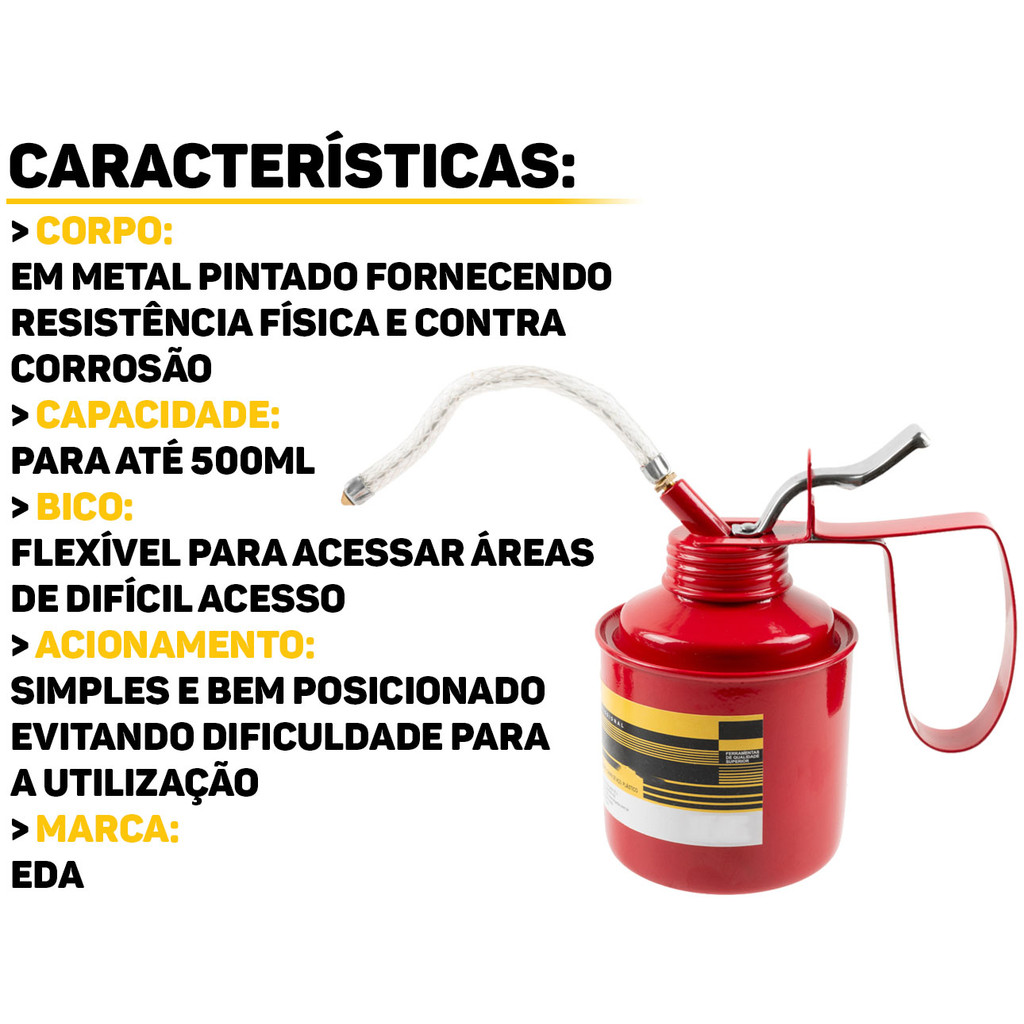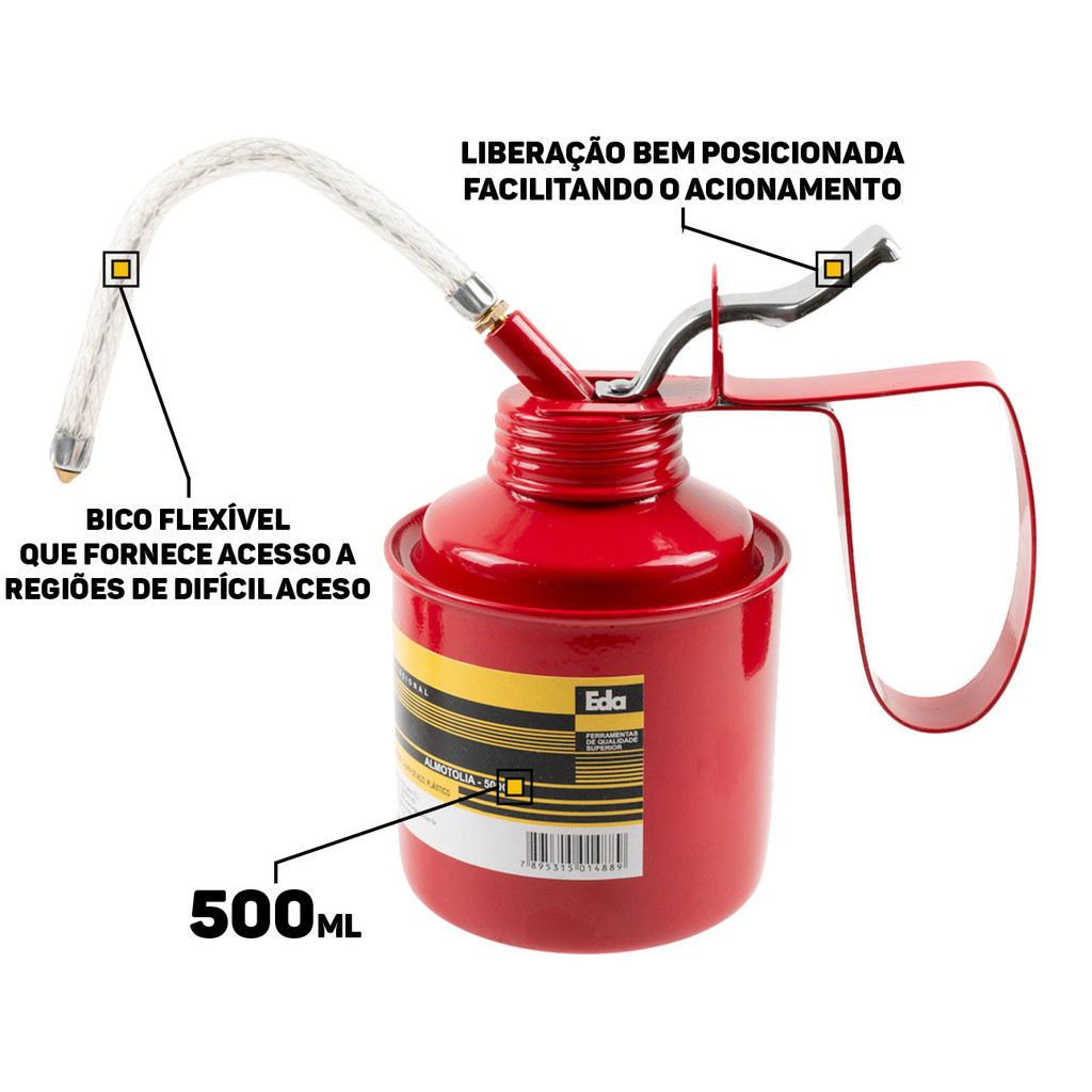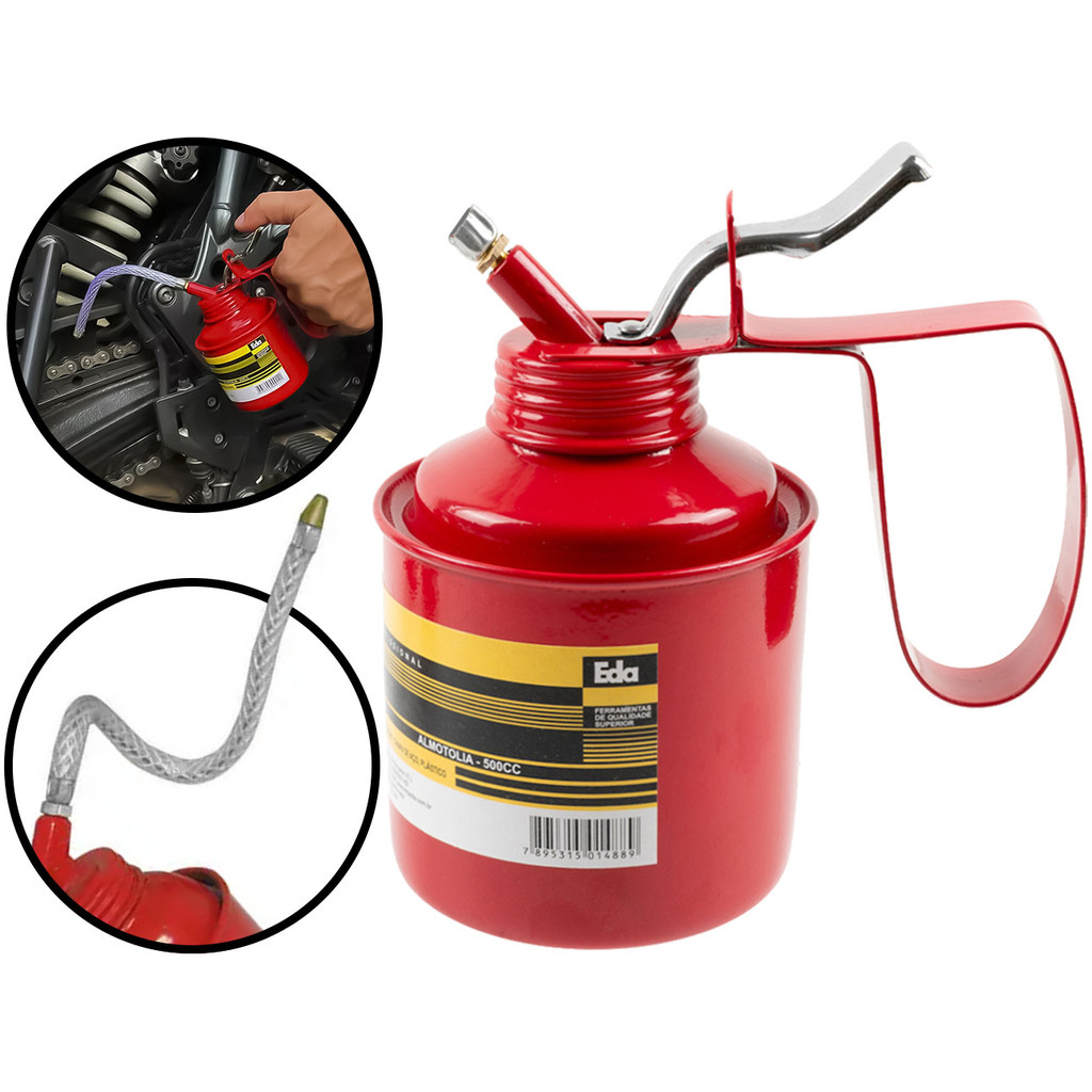 Almotolia Metálica 500ml Aplicador Bomba De Óleo Bico Flexível P/ Oficina Indústria Multiuso Eda