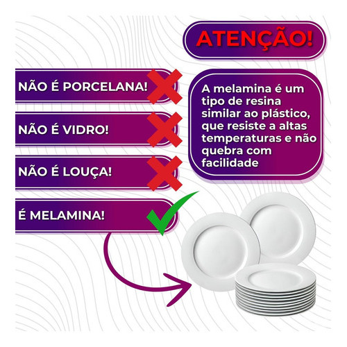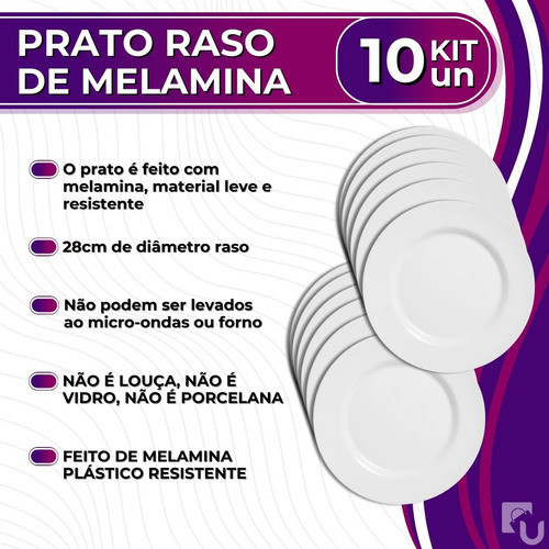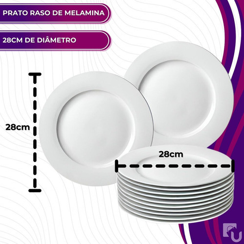 Jogo Kit 10 Pratos Raso 28cm Leve Resistente Branco Melamina Liso Bestfer