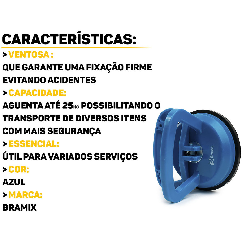 Ventosa Simples Em Plástico E Borracha Para Vidros Cerâmica Com Capacidade Para 25kg
