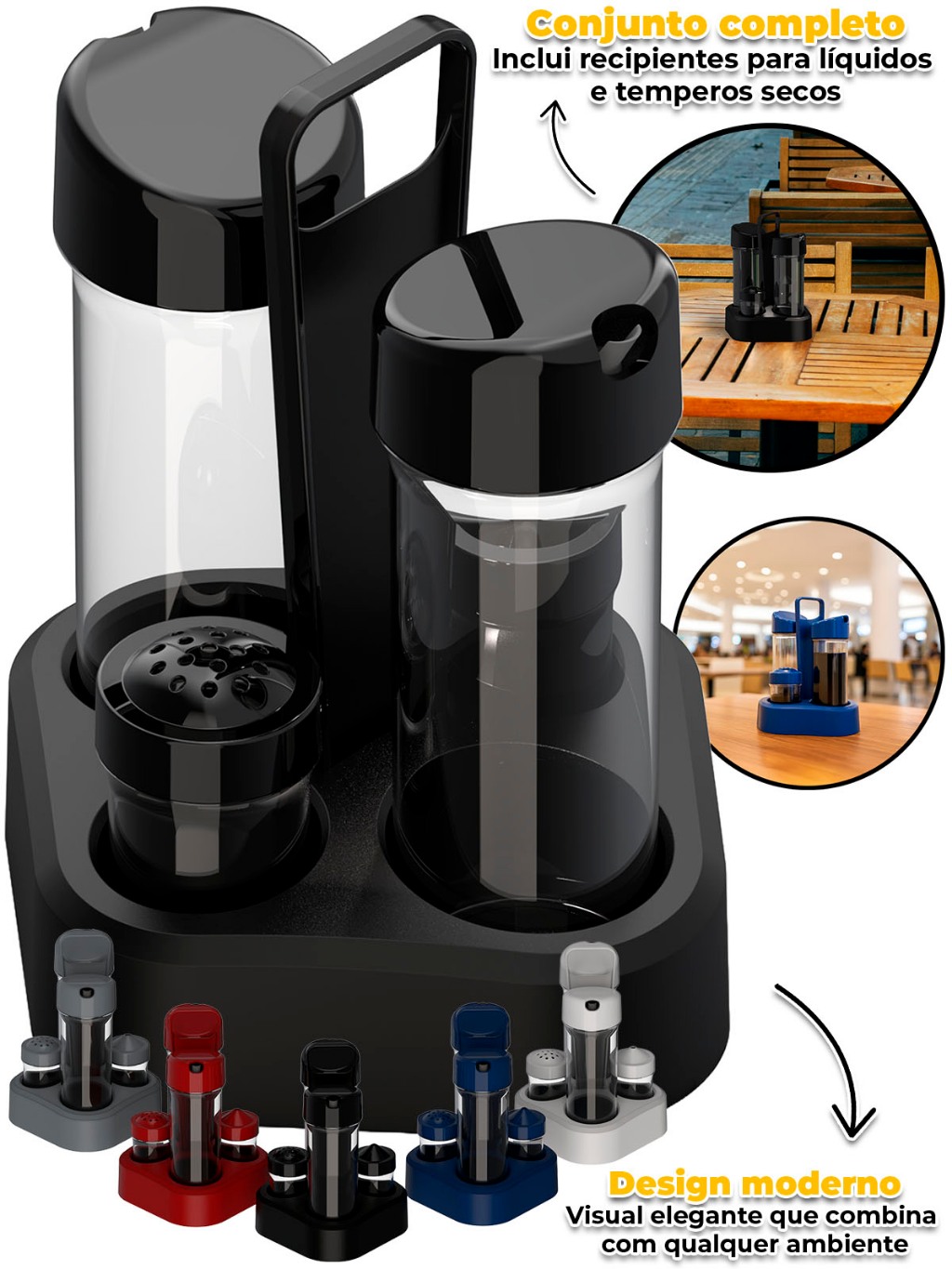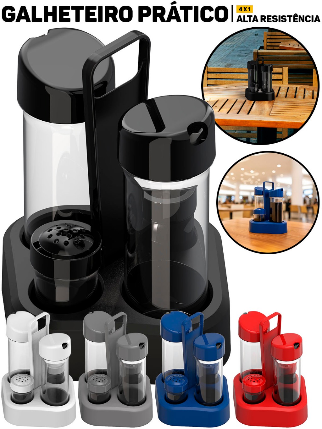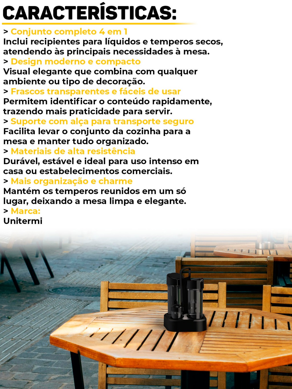 Jogo Galheteiro 4x1 Unitermi Porta Temperos Especiarias Azeite Vinagre Saleiro Paliteiro P/ Cozinha